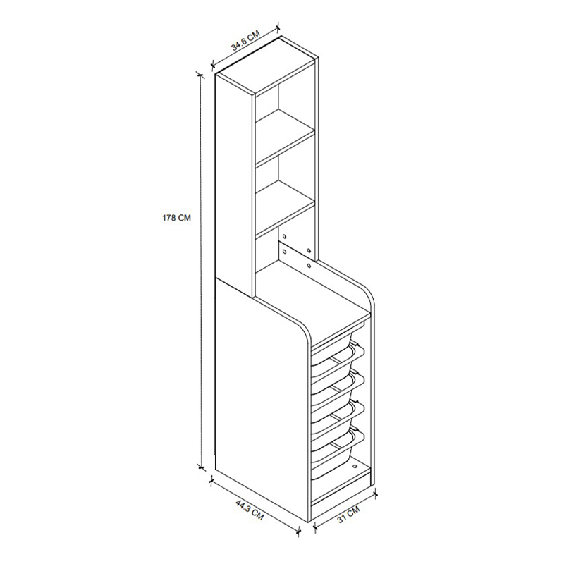 Έπιπλο κουζίνας – μπάνιου Utah Megapap με 5 συρτάρια χρώμα λευκό 34,6×44,3×178εκ.