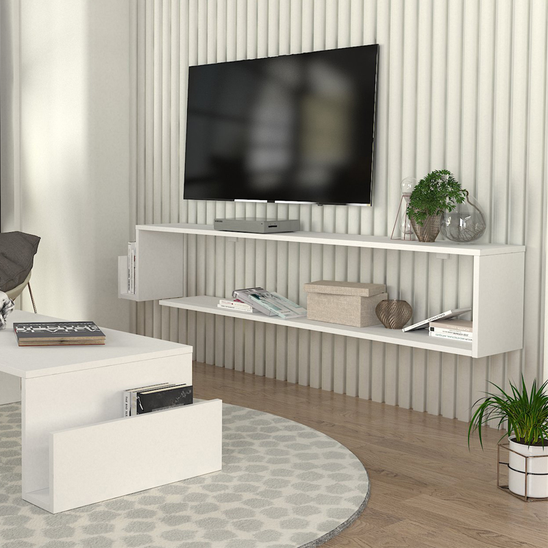 Έπιπλο τηλεόρασης επιτοίχιο Regnar Megapap χρώμα λευκό 168,6x25x31,8εκ.