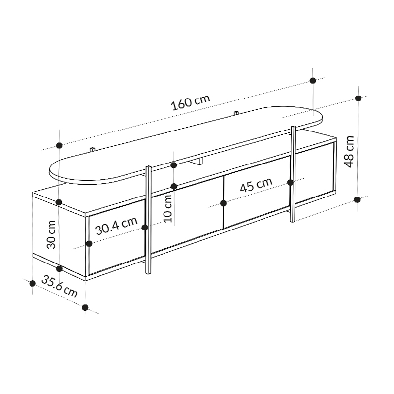 - Διαστάσεις: Μήκος 160 x Βάθος 35,6 x Ύψος 48 εκ.