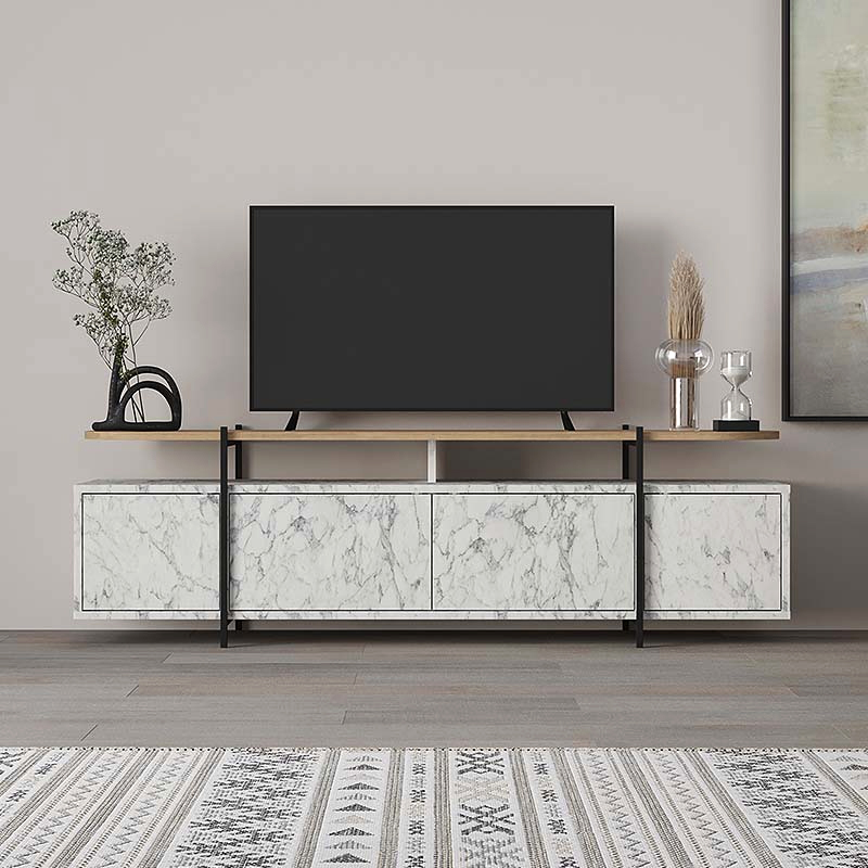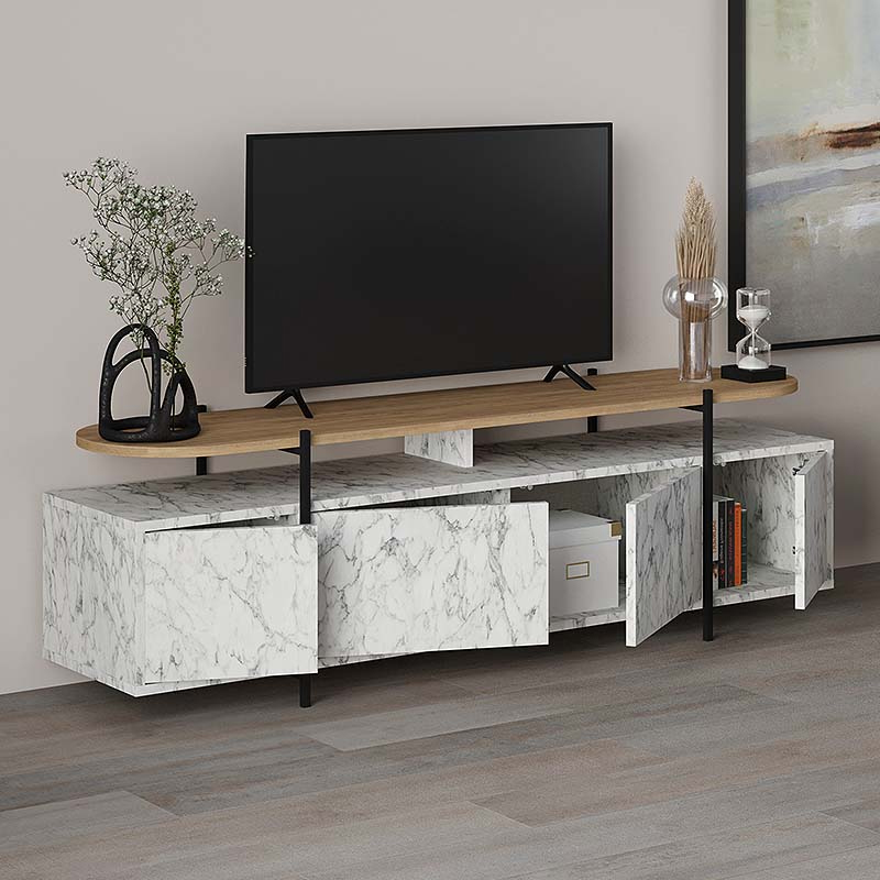 Έπιπλο τηλεόρασης Hanley Megapap από μελαμίνη χρώμα λευκό εφέ μαρμάρου 160×35,6×48εκ.