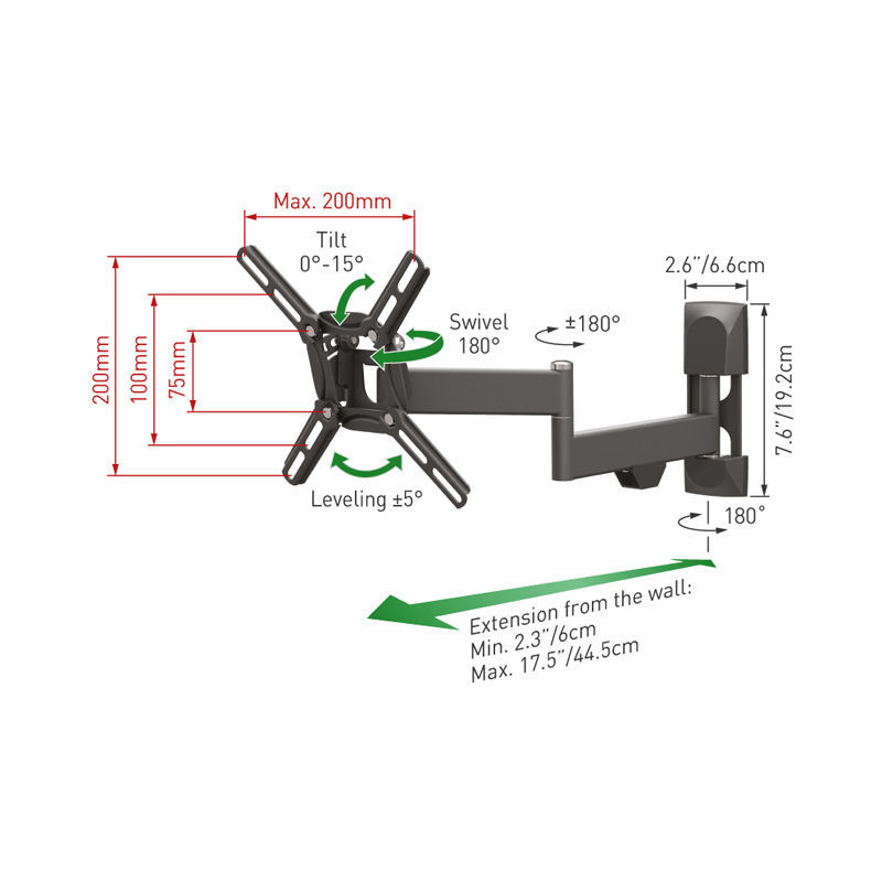 Βάση Τηλεόρασης Τοίχου 2400.B Barkan 13″ – 43″ με Διπλό Βραχίονα και Κλίση