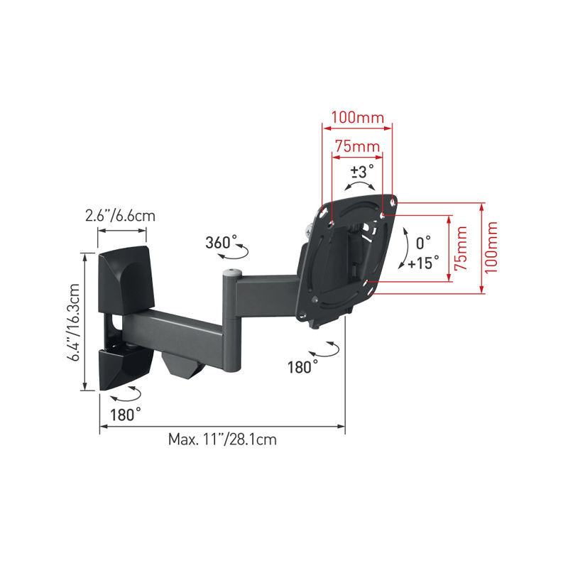 Βάση Τηλεόρασης Τοίχου E140.B Barkan 13″ – 29″ με Διπλό Βραχίονα και Κλίση
