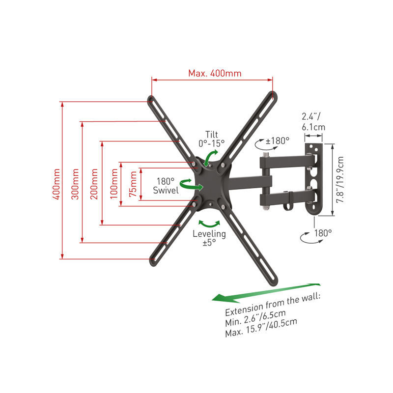 Βάση Τηλεόρασης Τοίχου E3433 Barkan 13″ – 65″ με Βραχίονα και Κλίση