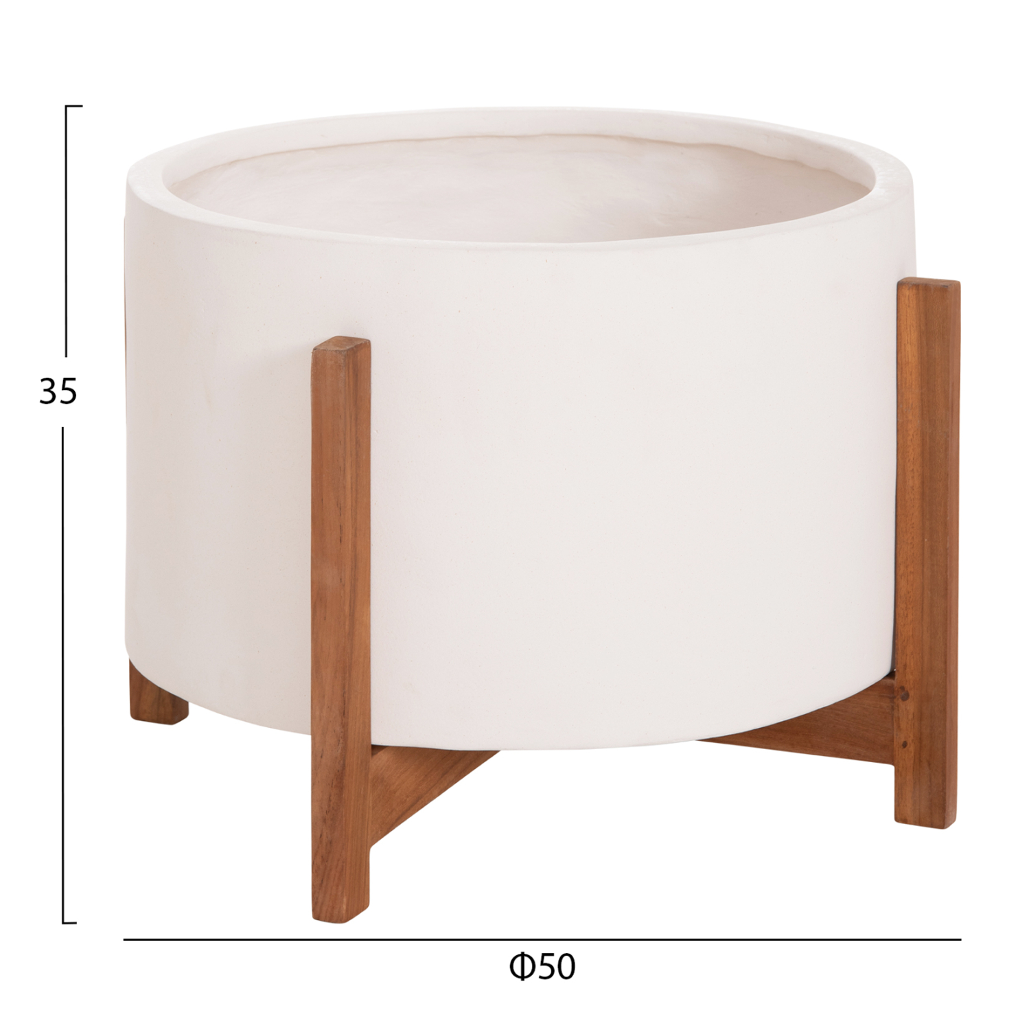 Η γλάστρα κασπό HOFF συνδυάζει μοντέρνα αισθητική με φυσικά υλικά, δημιουργώντας ένα διακοσμητικό στοιχείο που αναβαθμίζει κάθε εσωτερικό χώρο. Το ΛΕΥΚΟ σώμα από fiber cement προσφέρει minimal κομψότητα, ενώ η βάση από ξύλο teak δημιουργεί μια όμορφη αντίθεση που προσθέτει ζεστασιά και φυσικό χαρακτήρα. Η γλάστρα εφαρμόζει μέσα στη βάση, δημιουργώντας ένα αρμονικό σύνολο που ταιριάζει ιδανικά σε σύγχρονα σπίτια, επαγγελματικούς χώρους ή χώρους φιλοξενίας.
