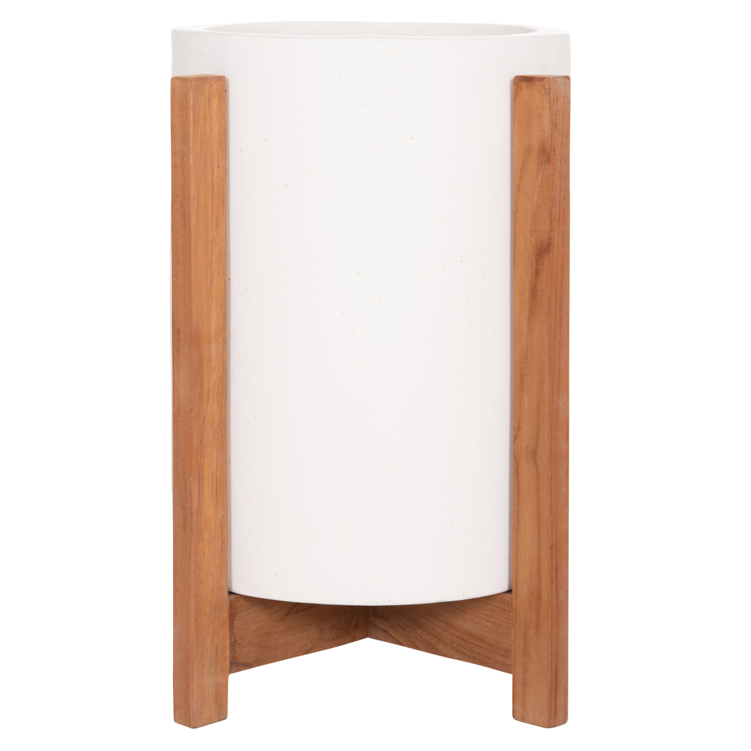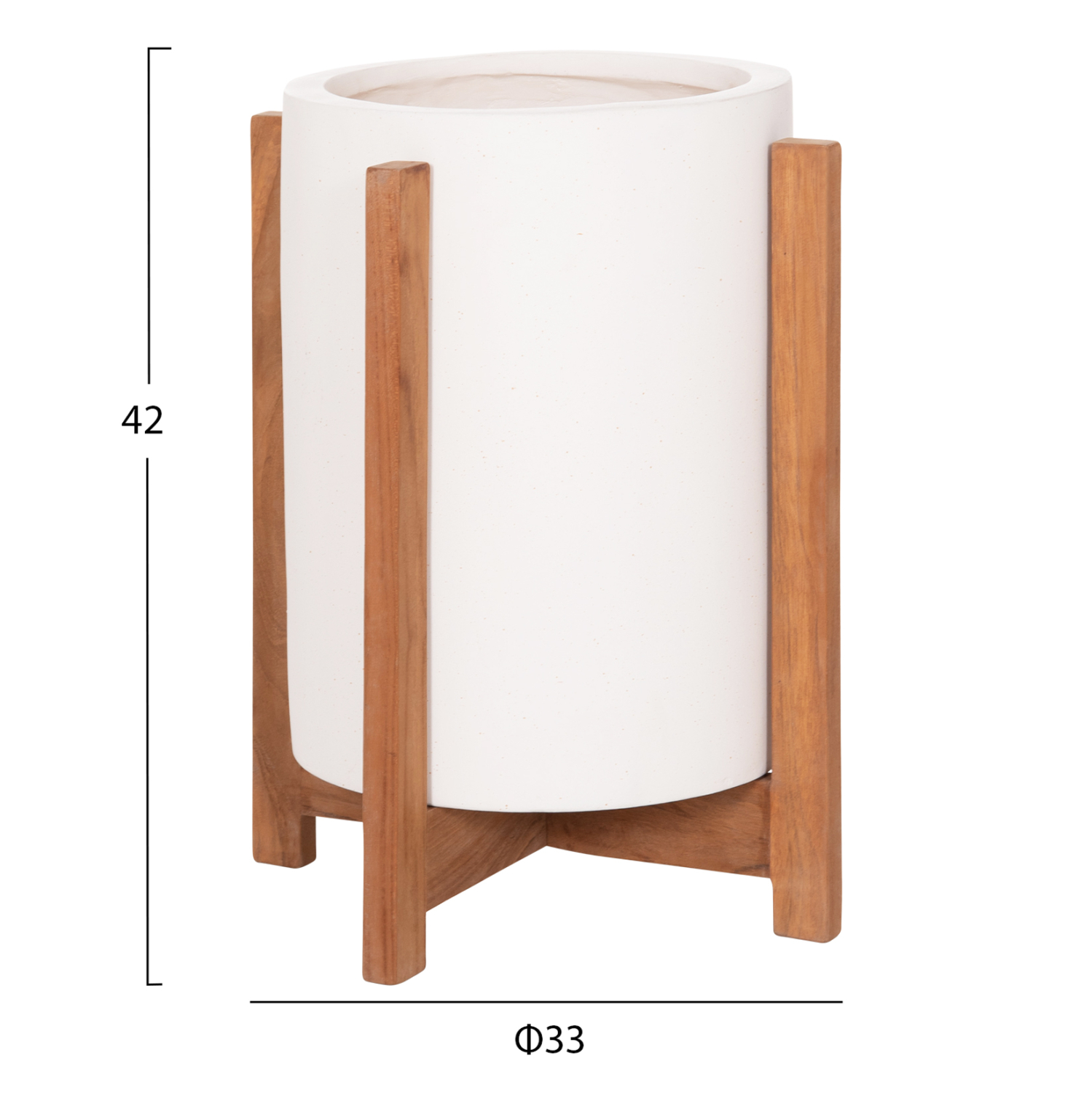 Η μικρή γλάστρα κασπό HOFF συνδυάζει μοντέρνα αισθητική με φυσικά υλικά, δημιουργώντας ένα διακοσμητικό στοιχείο που αναβαθμίζει κάθε εσωτερικό χώρο. Το ΛΕΥΚΟ σώμα από fiber cement προσφέρει minimal κομψότητα, ενώ η βάση από ξύλο teak δημιουργεί μια όμορφη αντίθεση που προσθέτει ζεστασιά και φυσικό χαρακτήρα. Η γλάστρα εφαρμόζει μέσα στη βάση, δημιουργώντας ένα αρμονικό σύνολο που ταιριάζει ιδανικά σε σύγχρονα σπίτια, επαγγελματικούς χώρους ή χώρους φιλοξενίας.