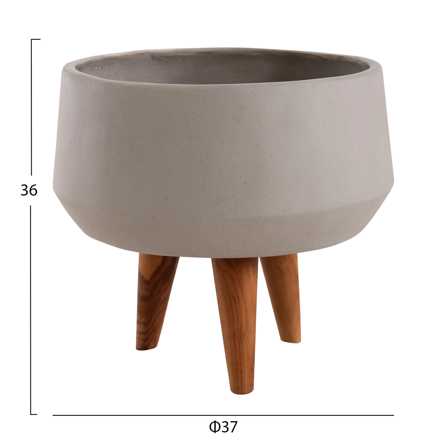 Η φαρδιά και ρηχή γλάστρα εσωτερικού χώρου (κασπό) QUAN είναι κατασκευασμένη από Fiber Cement σε ΓΚΡΙ χρώμα. Το ιδιαίτερο χαρακτηριστικό της είναι ότι συνοδεύεται και τοποθετείται σε μια ψηλή σχετικά τρίποδη βάση από ξύλο teak. Κατά την χρήση της συνιστάται η τοποθέτηση εσωτερικού δοχείου για την σωστή διατήρηση της γλάστρας.