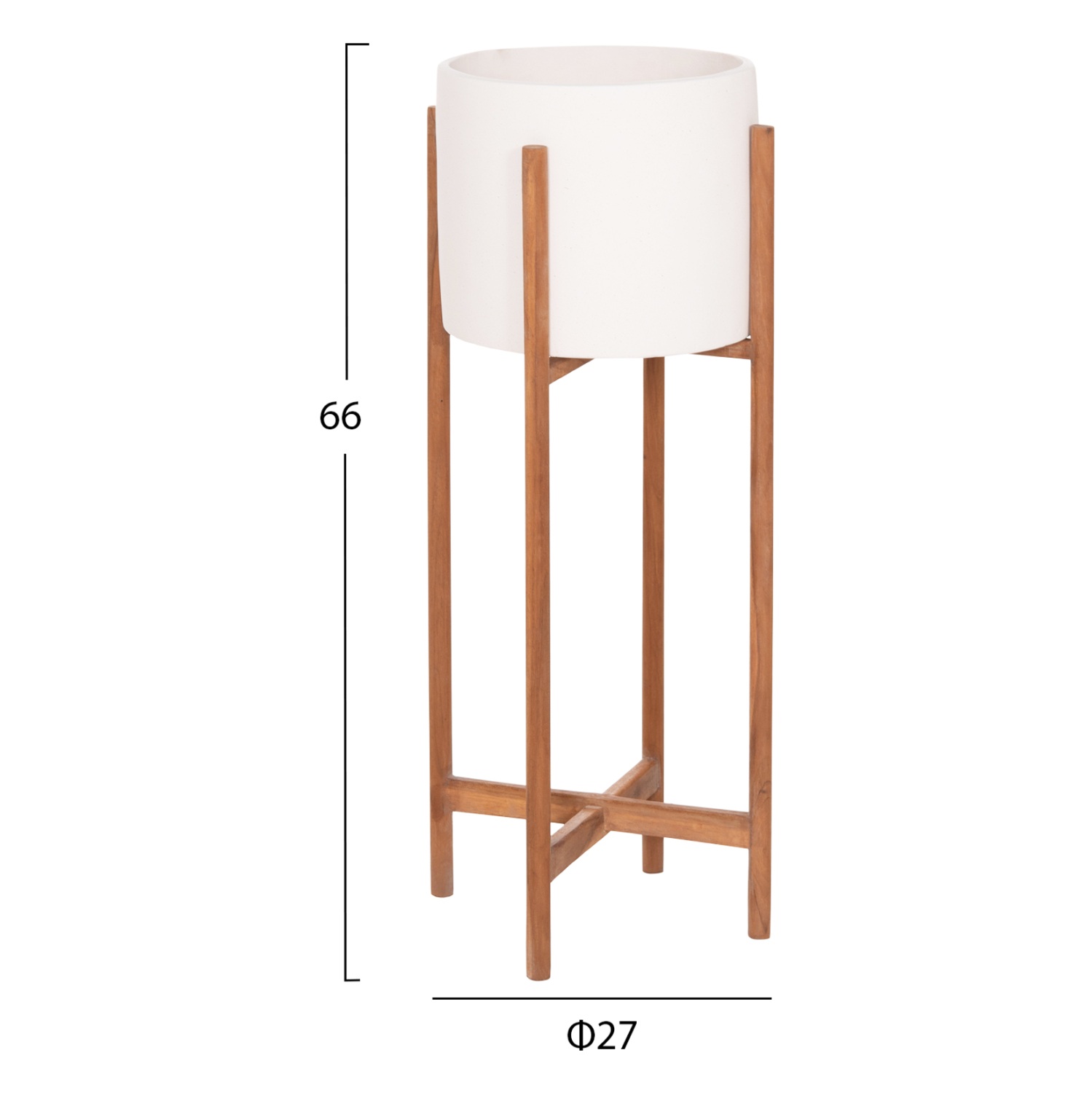 Η γλάστρα εσωτερικού χώρου (κασπό) RENTIL είναι κατασκευασμένη από Fiber Cement σε ΛΕΥΚΟ χρώμα. Το ιδιαίτερο χαρακτηριστικό της είναι ότι συνοδεύεται και τοποθετείται σε μια ψηλή χιαστί βάση από ξύλο teak. Συνιστάται η τοποθέτηση εσωτερικού δοχείου εάν πρόκειται να την χρησιμοποιήσετε με νερό!