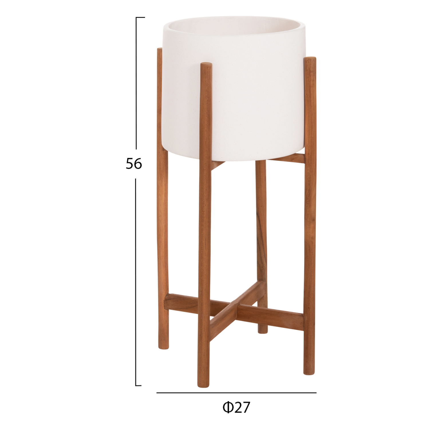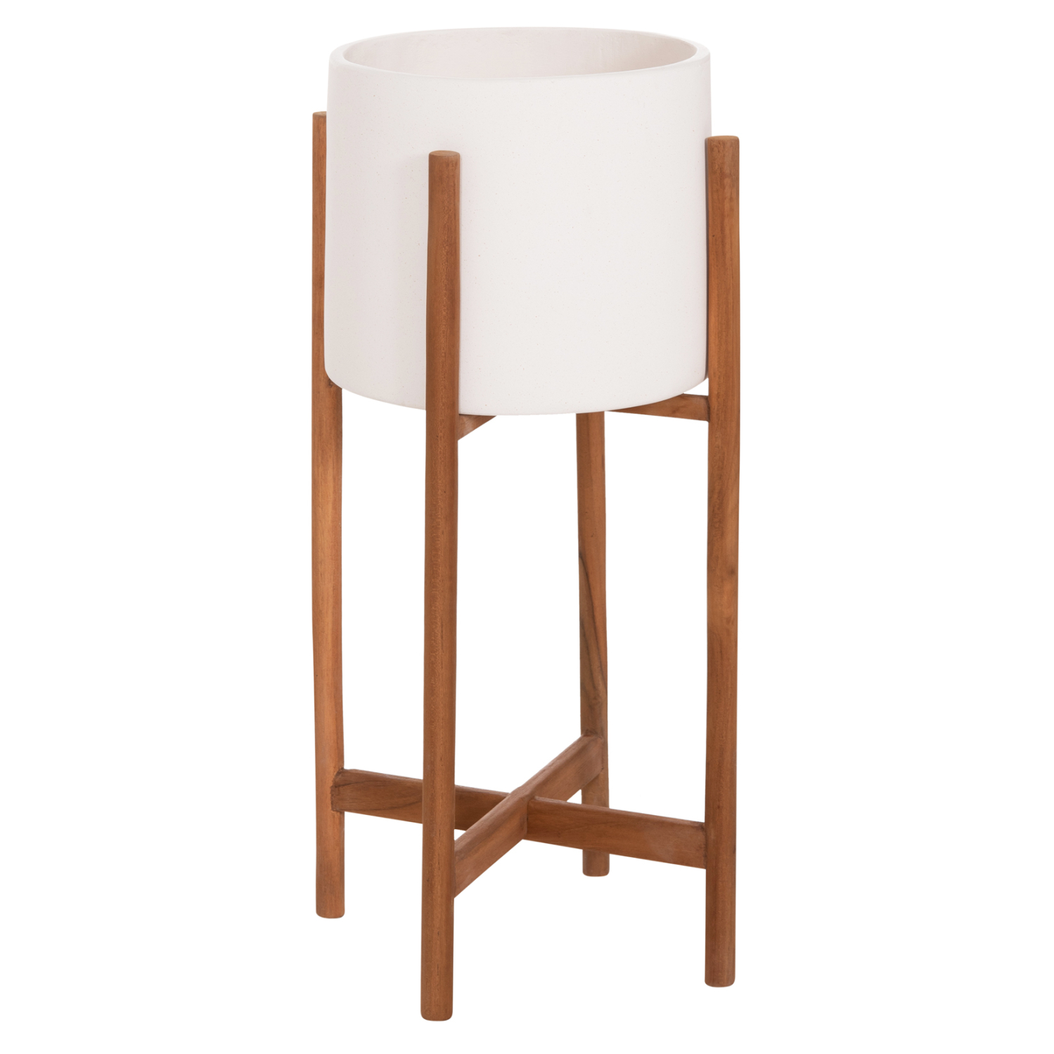 Η γλάστρα εσωτερικού χώρου (κασπό) RENTIL είναι κατασκευασμένη από Fiber Cement σε ΛΕΥΚΟ χρώμα. Το ιδιαίτερο χαρακτηριστικό της είναι ότι συνοδεύεται και τοποθετείται σε μια μεσαίου ύψους χιαστί βάση από ξύλο teak. Συνιστάται η τοποθέτηση εσωτερικού δοχείου εάν πρόκειται να την χρησιμοποιήσετε με νερό!
