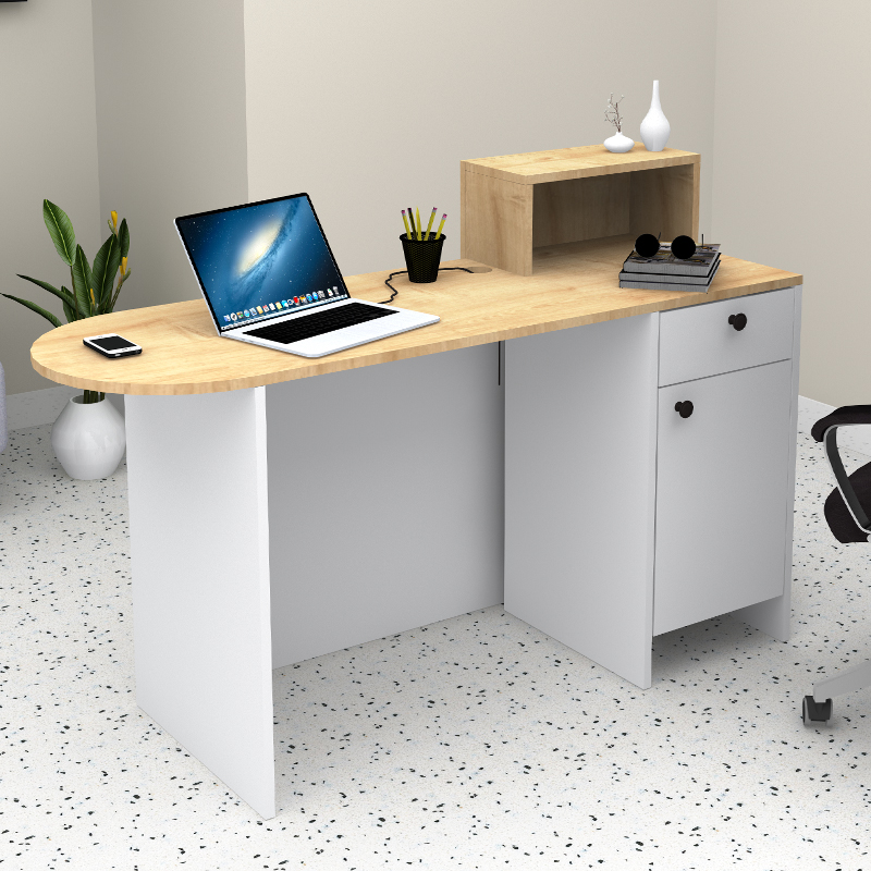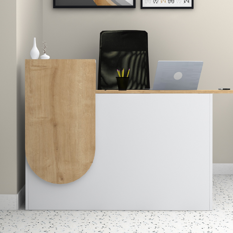 Γραφείο υποδοχής – reception Rezio Megapap χρώμα λευκό – φυσικό οξιάς 140x50x101,8εκ.