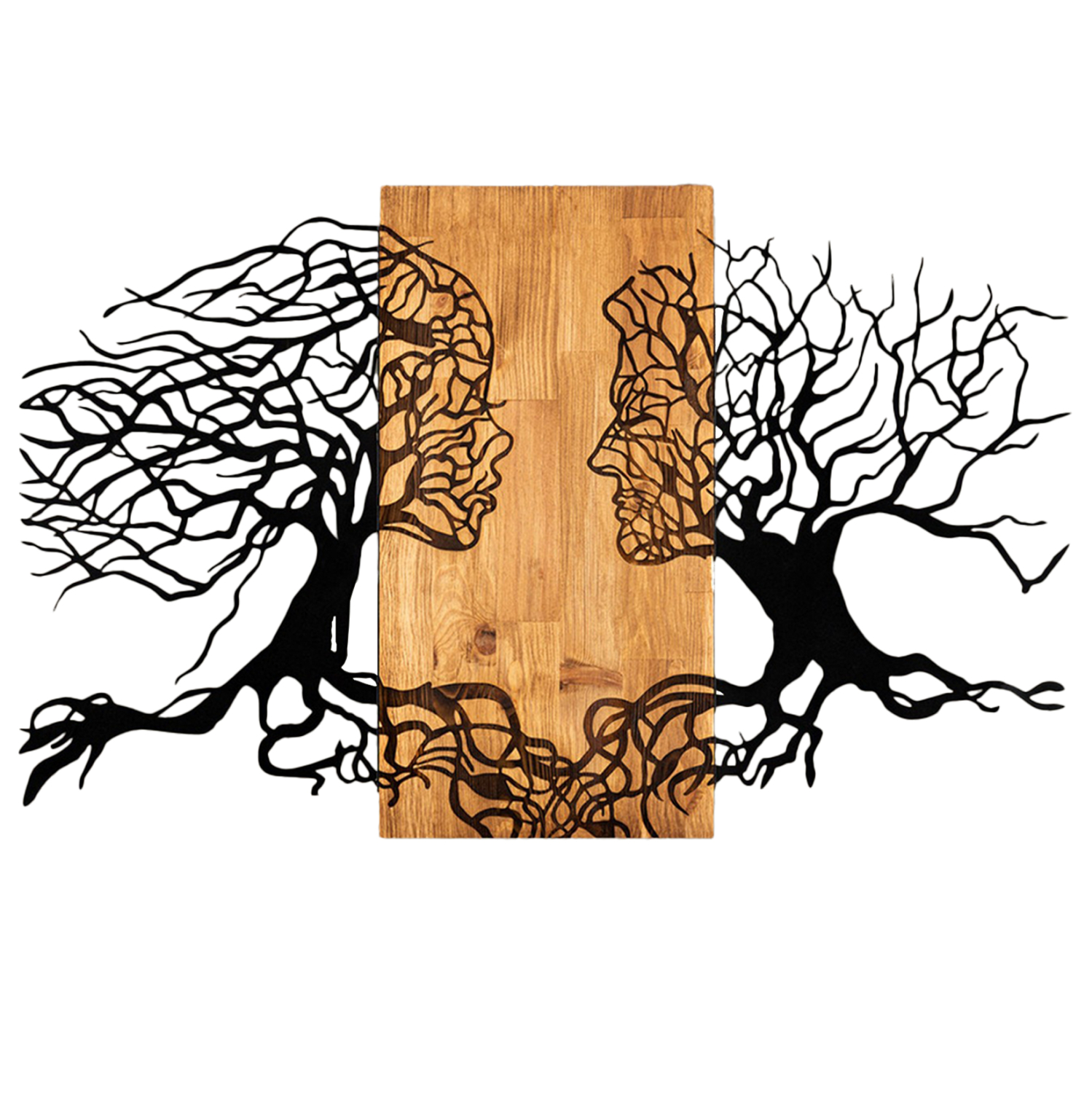 Θέλετε να τραβήξετε τα βλέμματα με κάτι όμορφο στον χώρο σας; Μην διστάσετε να διακοσμήσετε τον τοίχο σας με ένα κομμάτι wall art. Το ILLUSION έχει την εικόνα δύο δέντρων με την ψευδαίσθηση αντικριστών προσώπων, και είναι κατασκευασμένο από ΜΑΥΡΑ φύλλα μετάλλου επάνω σε μια ξύλινη ορθογώνια βάση σε ΦΥΣΙΚΟ, ενώ το εντυπωσιακό είναι ότι οι φιγούρες των προσώπων είναι σκαλιστές στο ξύλινο μέρος του διακοσμητικού! Μπορείτε όμως να φανταστείτε την χρησιμότητά τέτοιων διακοσμητικών;