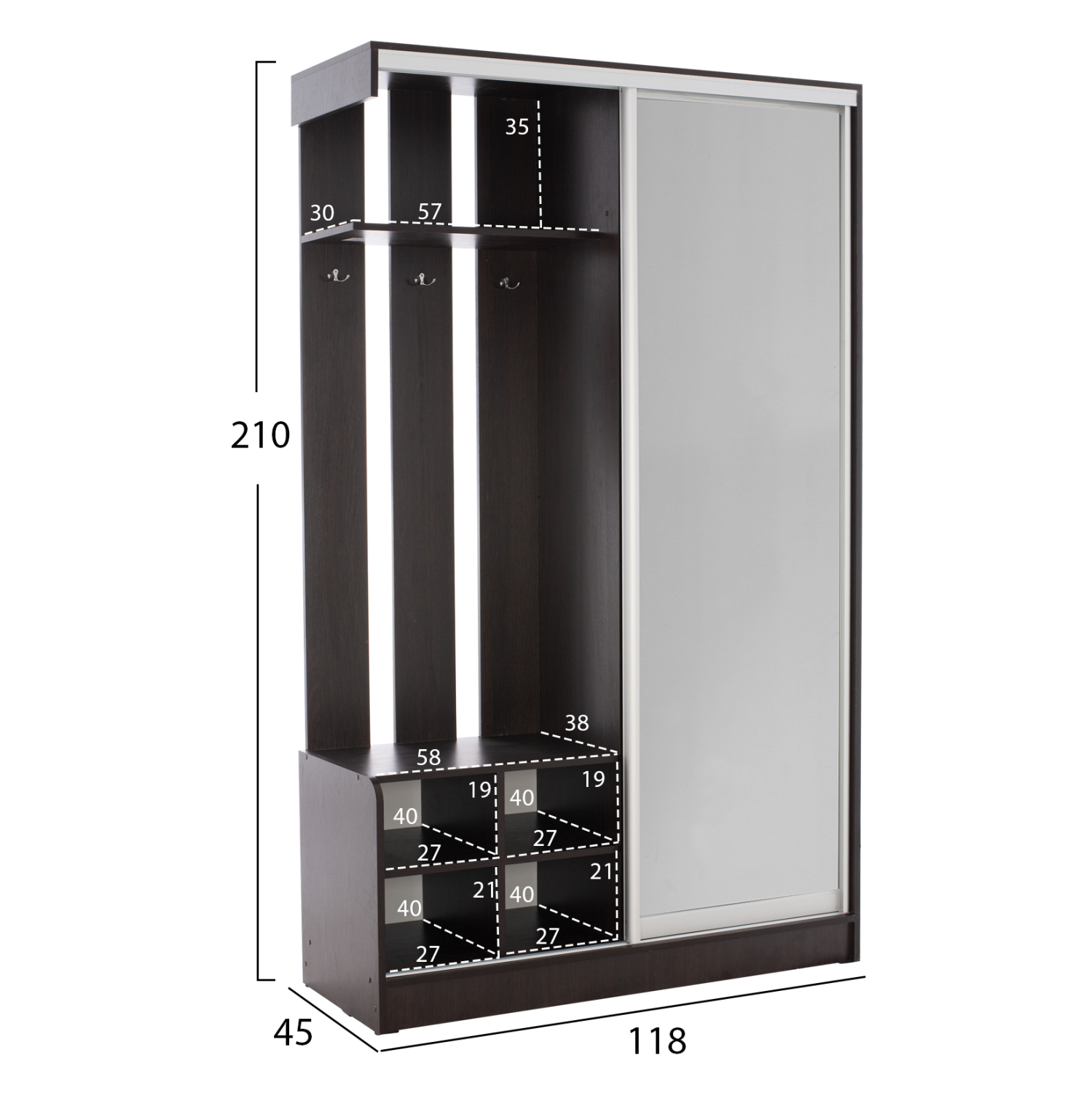 ΕΠΙΠΛΟ ΕΙΣΟΔΟΥ ΜΕ ΣΥΡΟΜΕΝΗ ΝΤΟΥΛΑΠΑ Κ ΚΑΘΡΕΦΤΗ DULCE WENGE HM2424.02 118X45X210Yεκ.