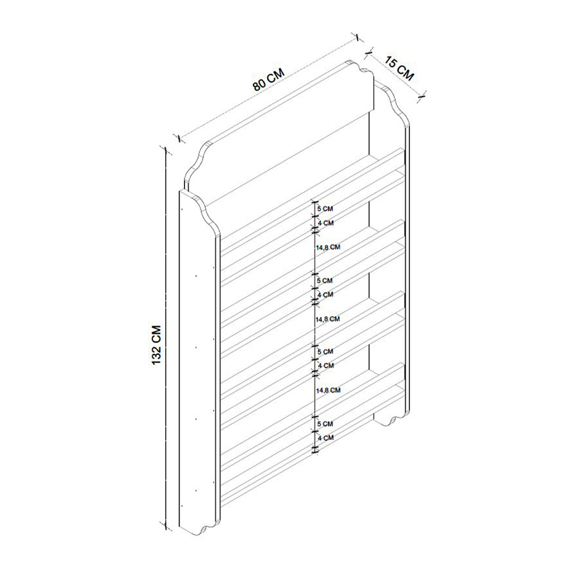 - Διαστάσεις: Μήκος 80 x Βάθος 15 x Ύψος 132 εκ.