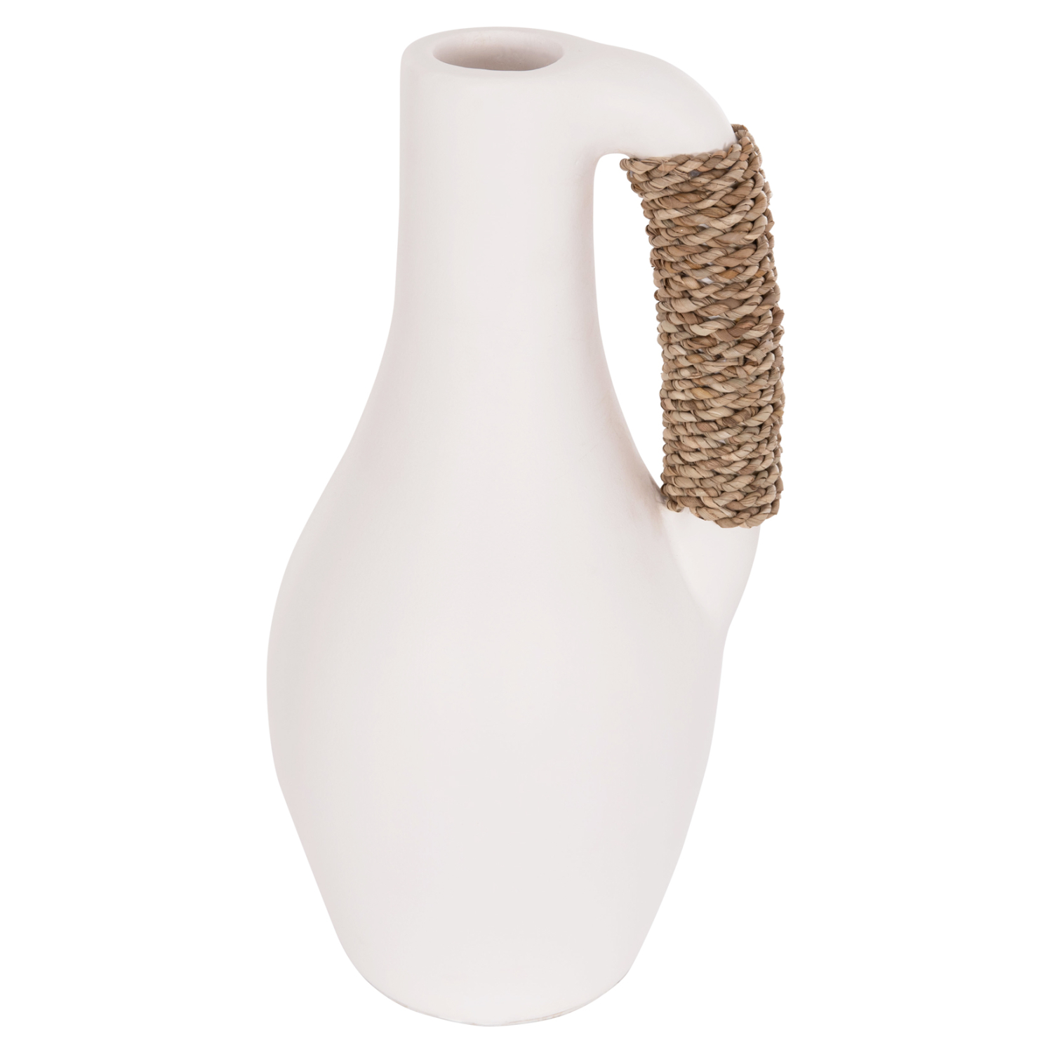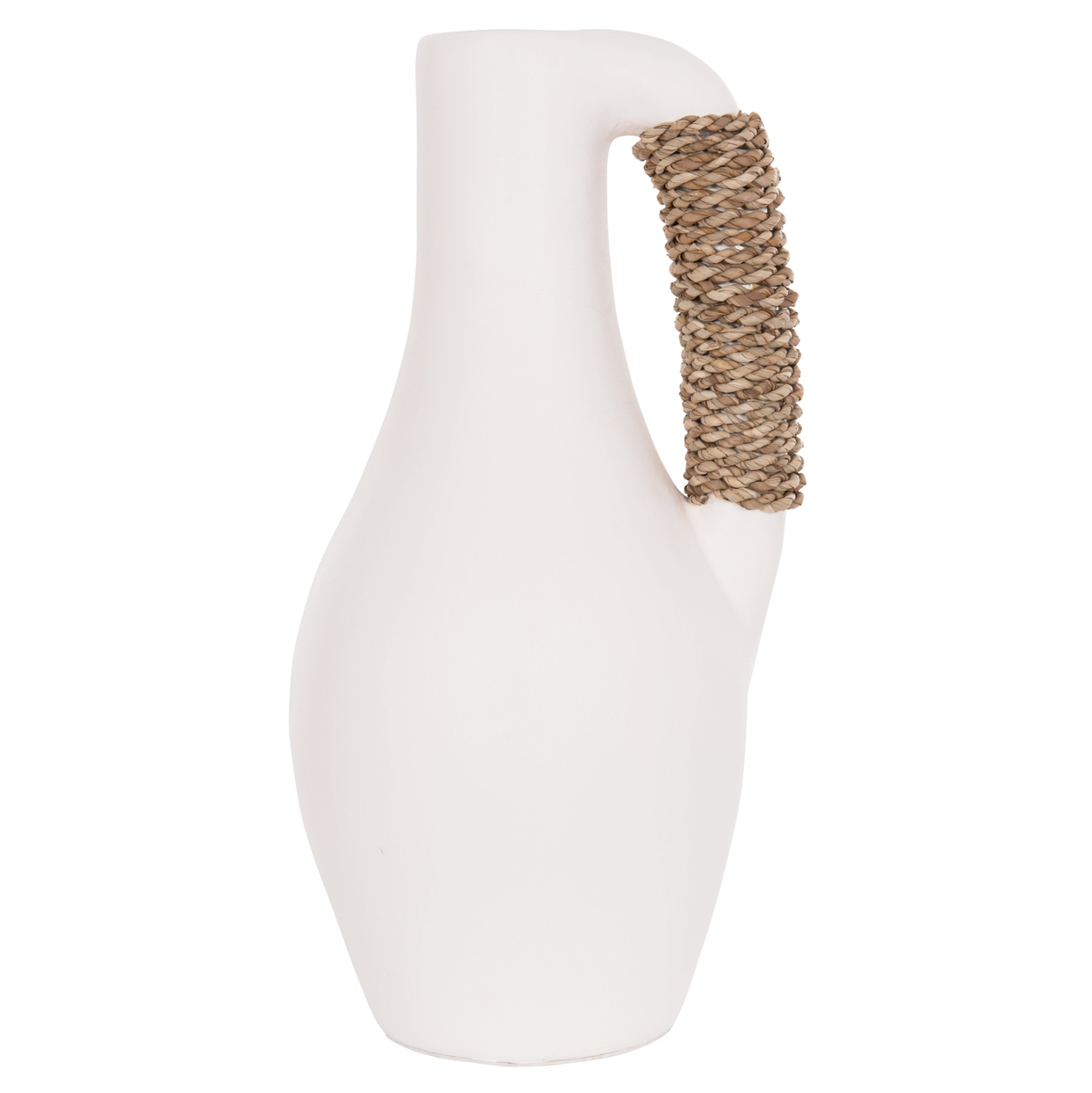 Το επιτραπέζιο χειροποίητο διακοσμητικό βάζο CAMMER είναι κατασκευασμένο εξολοκλήρου από τερακότα σε ΛΕΥΚΟ χρώμα ενώ διαθέτει διακοσμητική πλέξη από rattan στο χερούλι που διαθέτει. Ιδανικό για πληθώρα χώρων, τόσο για το σπίτι, όσο και για επαγγελματικούς χώρους.