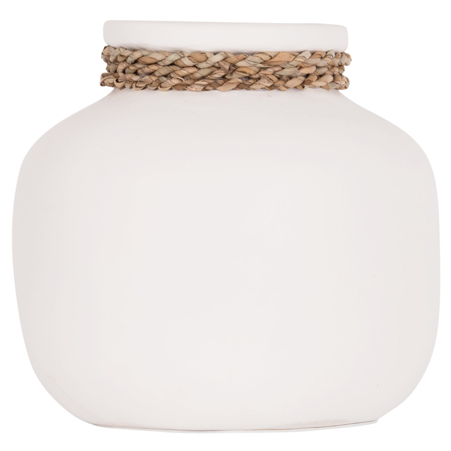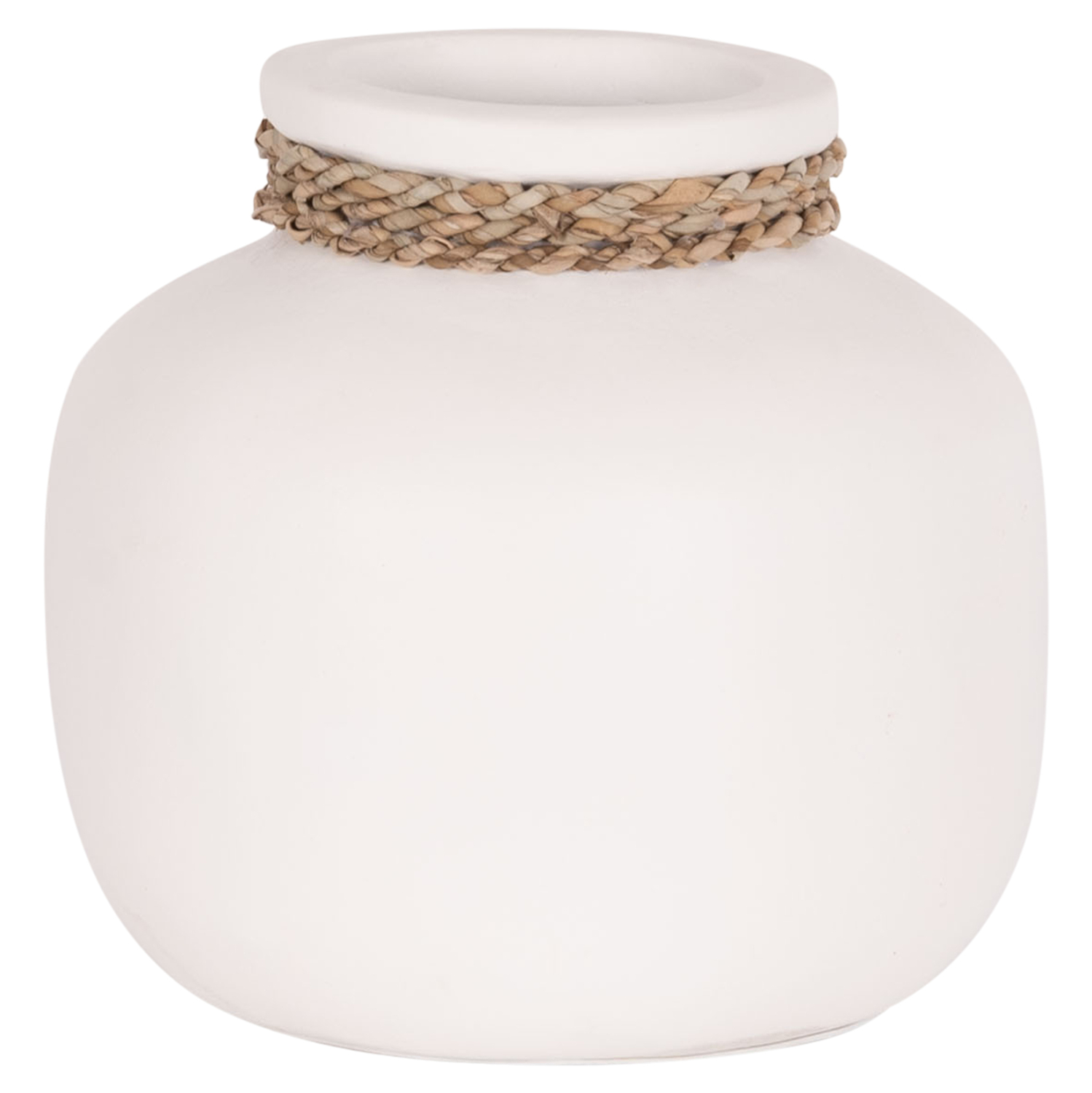 Το επιτραπέζιο χειροποίητο διακοσμητικό βάζο CAMMER είναι κατασκευασμένο εξολοκλήρου από τερακότα σε ΛΕΥΚΟ χρώμα ενώ διαθέτει διακοσμητική πλέξη από rattan περιμετρικά στον «λαιμό» του βάζου. Ιδανικό για πληθώρα χώρων, τόσο για το σπίτι, όσο και για επαγγελματικούς χώρους.