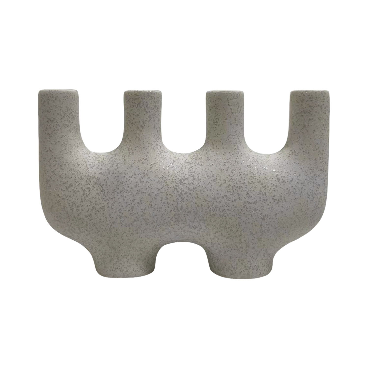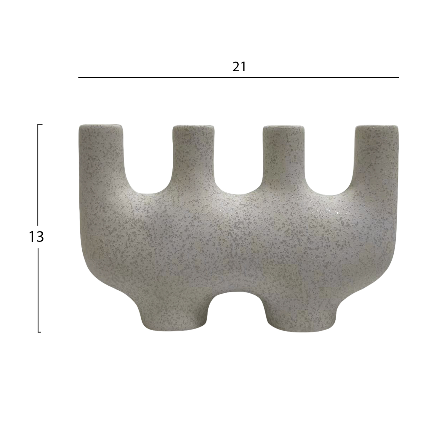 Το HM4641.01 ανήκει στην καινούργια μας σειρά επιτραπέζιων διακοσμητικών «MANI». Αυτό το κομμάτι σε σχήμα βάζου με 4 στόμια σε ΥΠΟΛΕΥΚΟ χρώμα είναι κατασκευασμένο από κεραμικό υλικό με ειδική επεξεργασία κρυσταλλοποίησης, που δίνει την όψη και την υφή κρυστάλλου στα κεραμικά αντικείμενα.