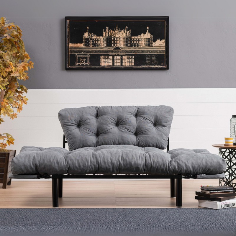 Καναπές – κρεβάτι Nitta Megapap διθέσιος υφασμάτινος χρώμα γκρι 155x70x85εκ.
