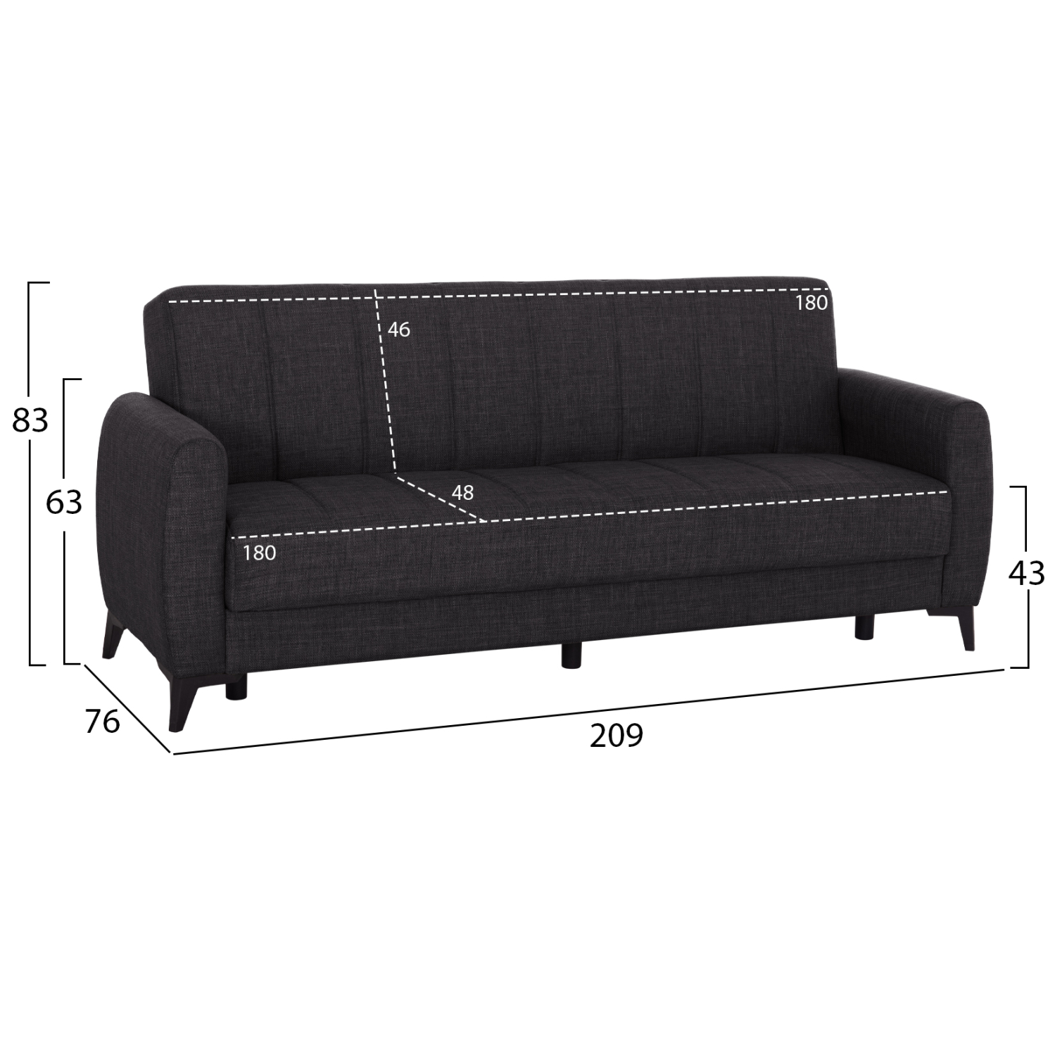 ΚΑΝΑΠΕΣ ΚΡΕΒΑΤΙ ΜΕ ΑΠΟΘ.ΧΩΡΟ TΡΙΘΕΣΙΟΣ NIKKO HM3292.01 ΓΚΡΙ ΥΦΑΣΜΑ 209x76x83Υεκ.