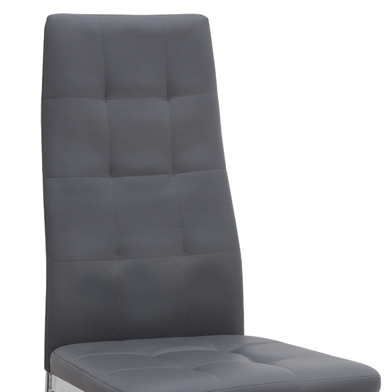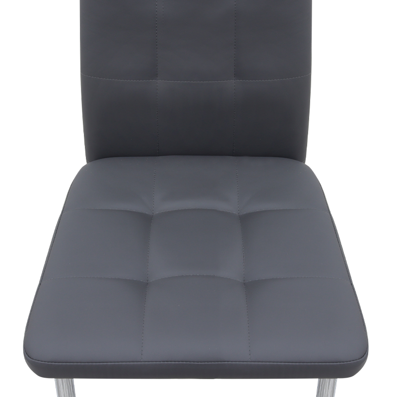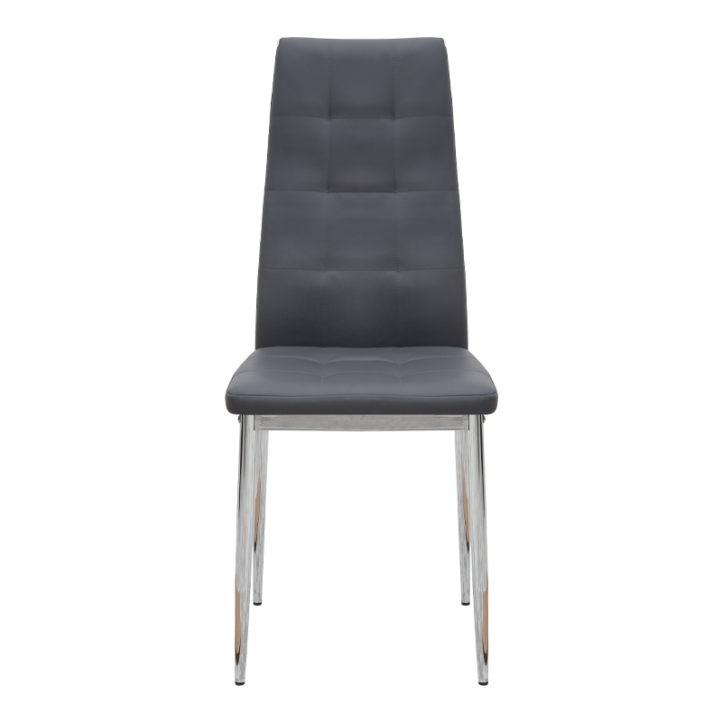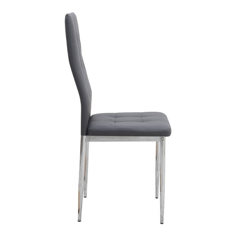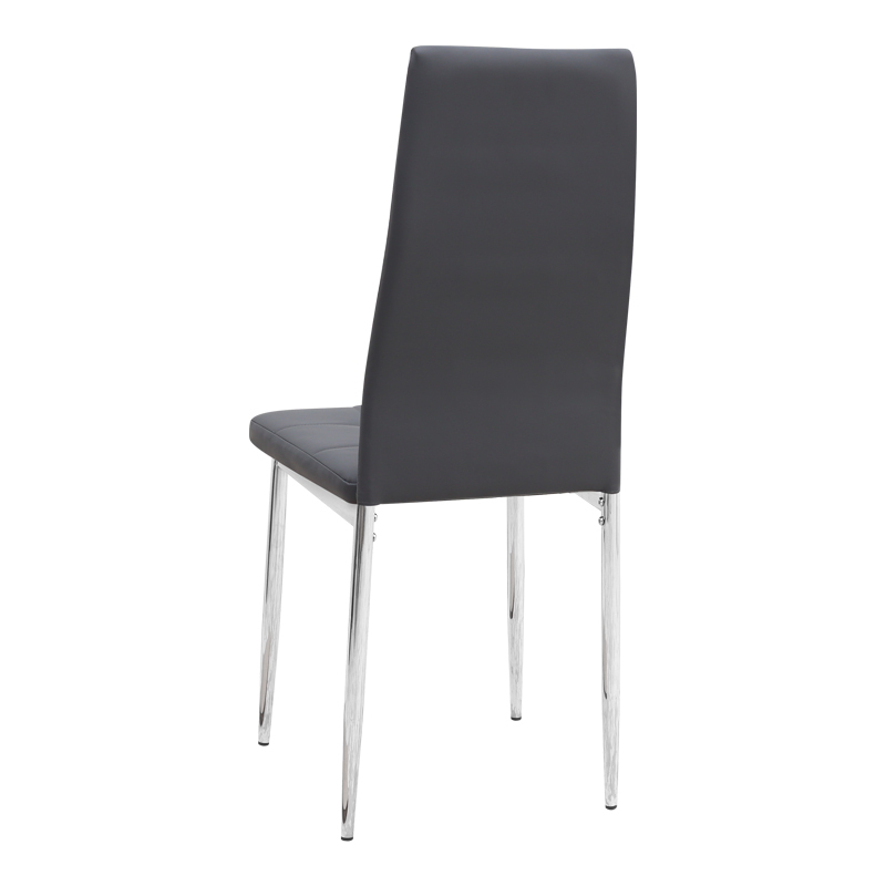 Η καρέκλα Rosa διαθέτει κάθισμα από τεχνόδερμα PU σε γκρι χρώμα και μεταλλικά πόδια χρωμίου, προσφέροντας αντοχή και πρακτικότητα στην καθημερινή χρήση. Ο λιτός, μοντέρνος σχεδιασμός της την κάνει κατάλληλη για κάθε τύπο τραπεζαρίας, οικιακής ή επαγγελματικής, προσφέροντας μια διακριτική αλλά κομψή παρουσία στον χώρο.