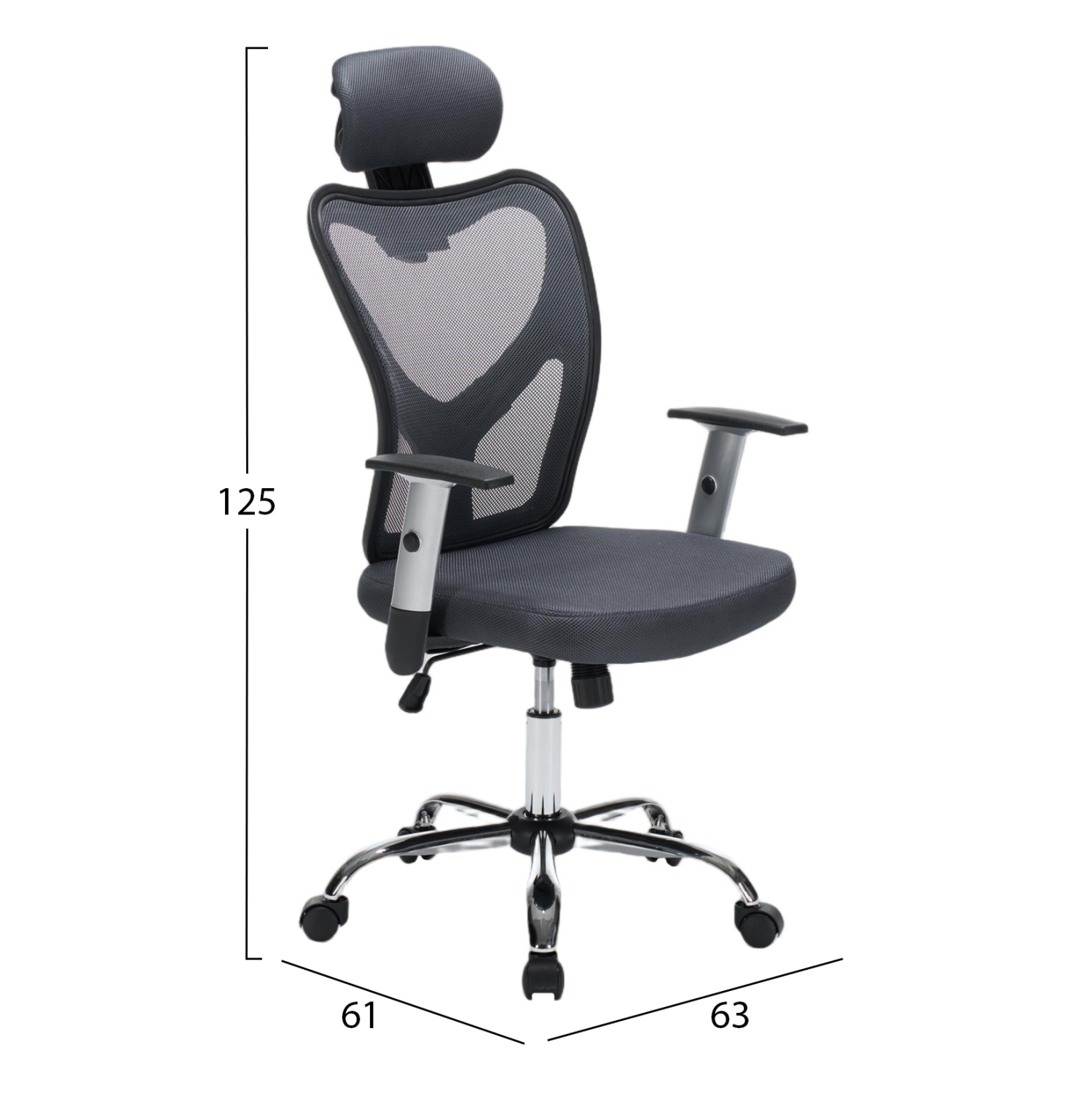•Σκελετός σε ΜΑΥΡΟ χρώμα & μπράτσα με ρύθμιση ύψους από πολυπροπυλένιο σε ΑΣΗΜΙ χρώμα