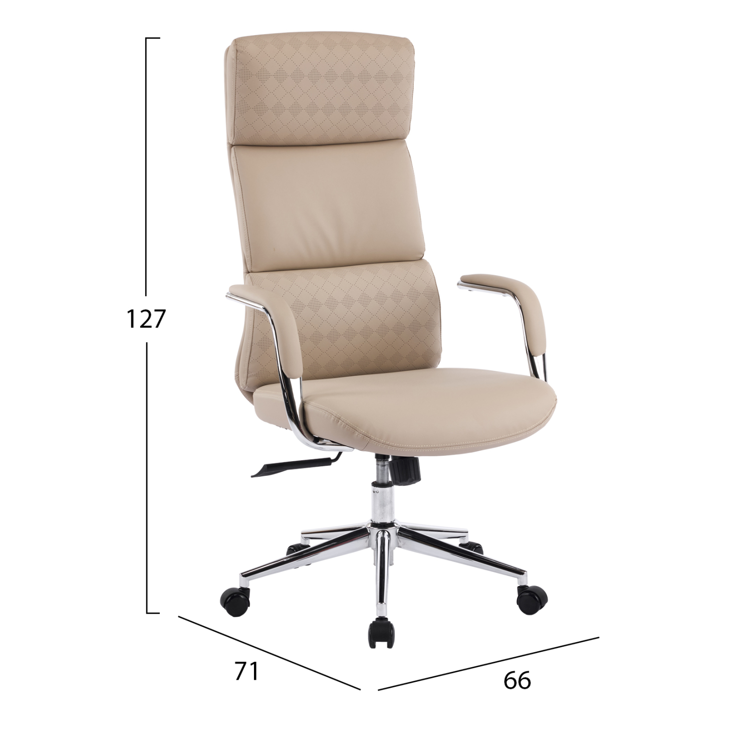 ΚΑΡΕΚΛΑ ΓΡΑΦΕΙΟΥ MEITE HM18353.02 ΜΠΕΖ PU ΔΕΡΜΑ–ΒΑΣΗ ΧΡΩΜΙΟΥ 66x71x127Υεκ