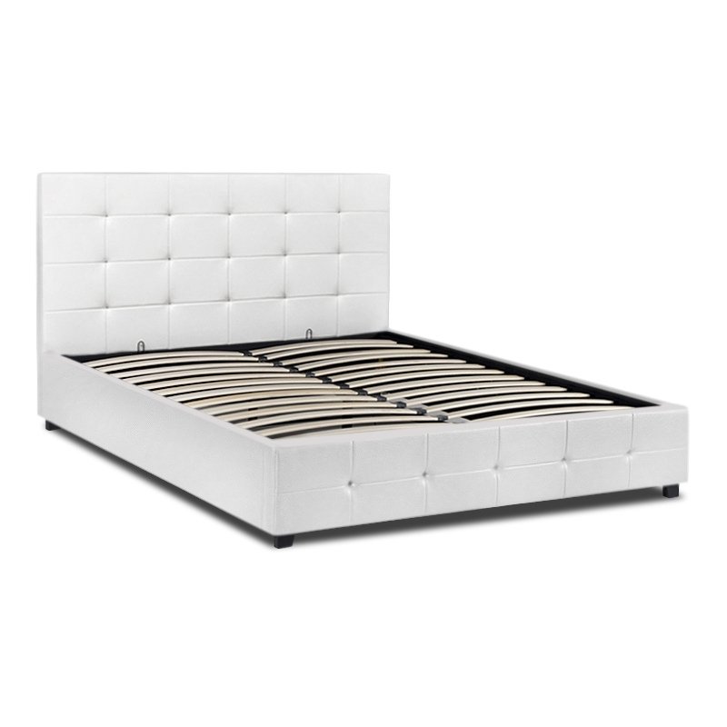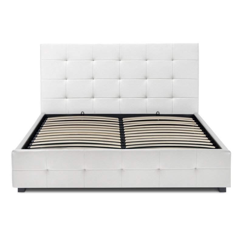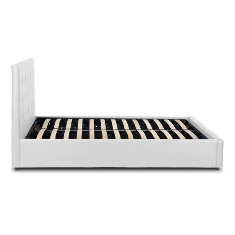 Κρεβάτι Iro Megapap από τεχνόδερμα με αποθηκευτικό χώρο χρώμα λευκό 150×200εκ.