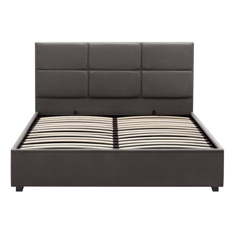 Κρεβάτι Kingston Megapap βελούδινο με αποθηκευτικό χώρο χρώμα ανθρακί – καφέ 150×200εκ.