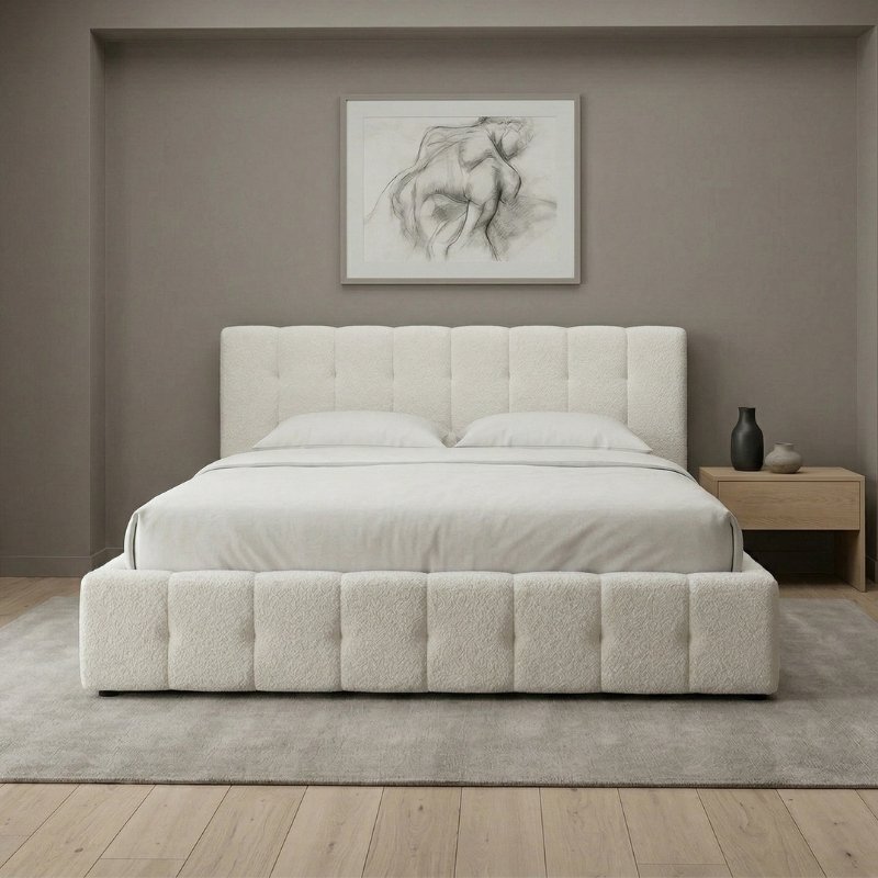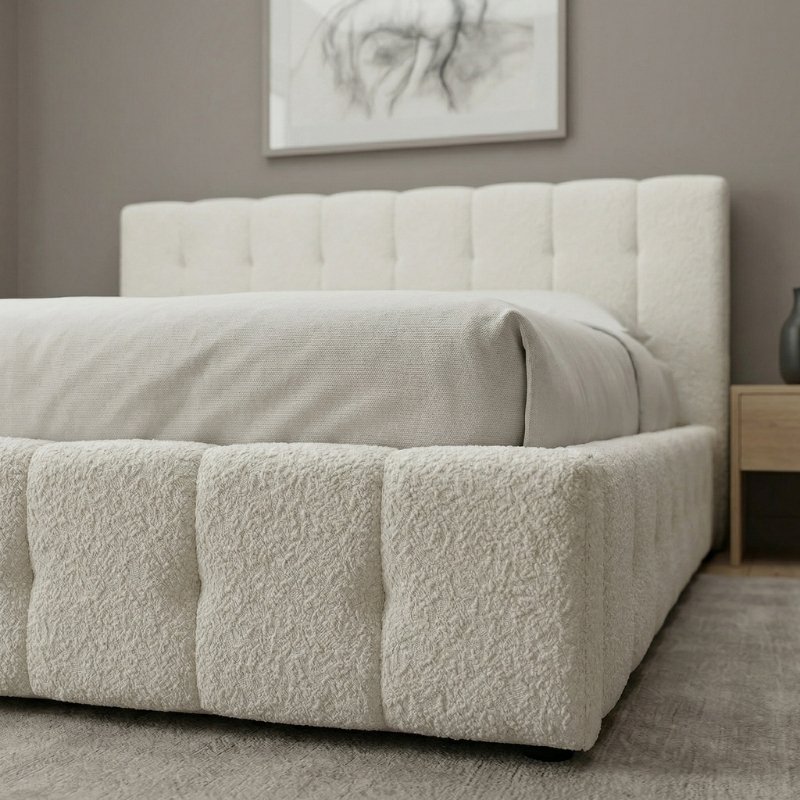 Η βάση με διπλή σειρά ανατομικών ταβλών εξασφαλίζει σωστή στήριξη του στρώματος και ποιοτικό ύπνο. Η επένδυση από μπουκλέ ύφασμα, με τη χαρακτηριστική ανάγλυφη υφή της, προσδίδει μια σύγχρονη και ιδιαίτερα κομψή αισθητική, δημιουργώντας ένα ζεστό και φιλόξενο περιβάλλον.