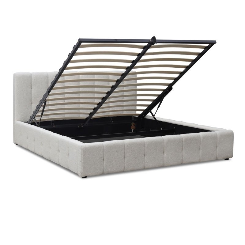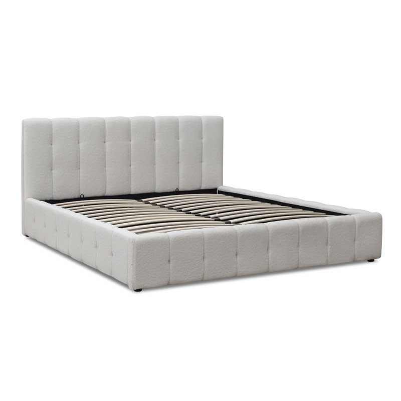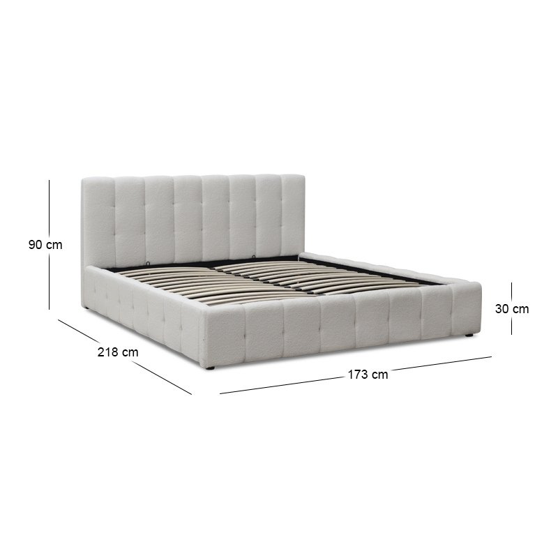 Κρεβάτι Norah Megapap μπουκλέ ύφασμα με αποθηκευτικό χώρο χρώμα ivory 160×200εκ.