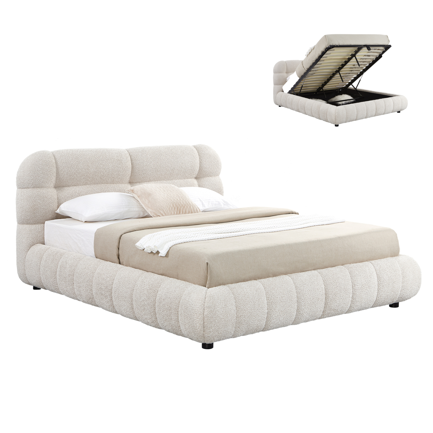 ΚΡΕΒΑΤΙ ΜΕ ΑΠΟΘ.ΧΩΡΟ MOLEN HM730.03 ΜΠΕΖ ΜΠΟΥΚΛΕ ΥΦΑΣΜΑ–ΓΙΑ ΣΤΡΩΜΑ 160×200εκ