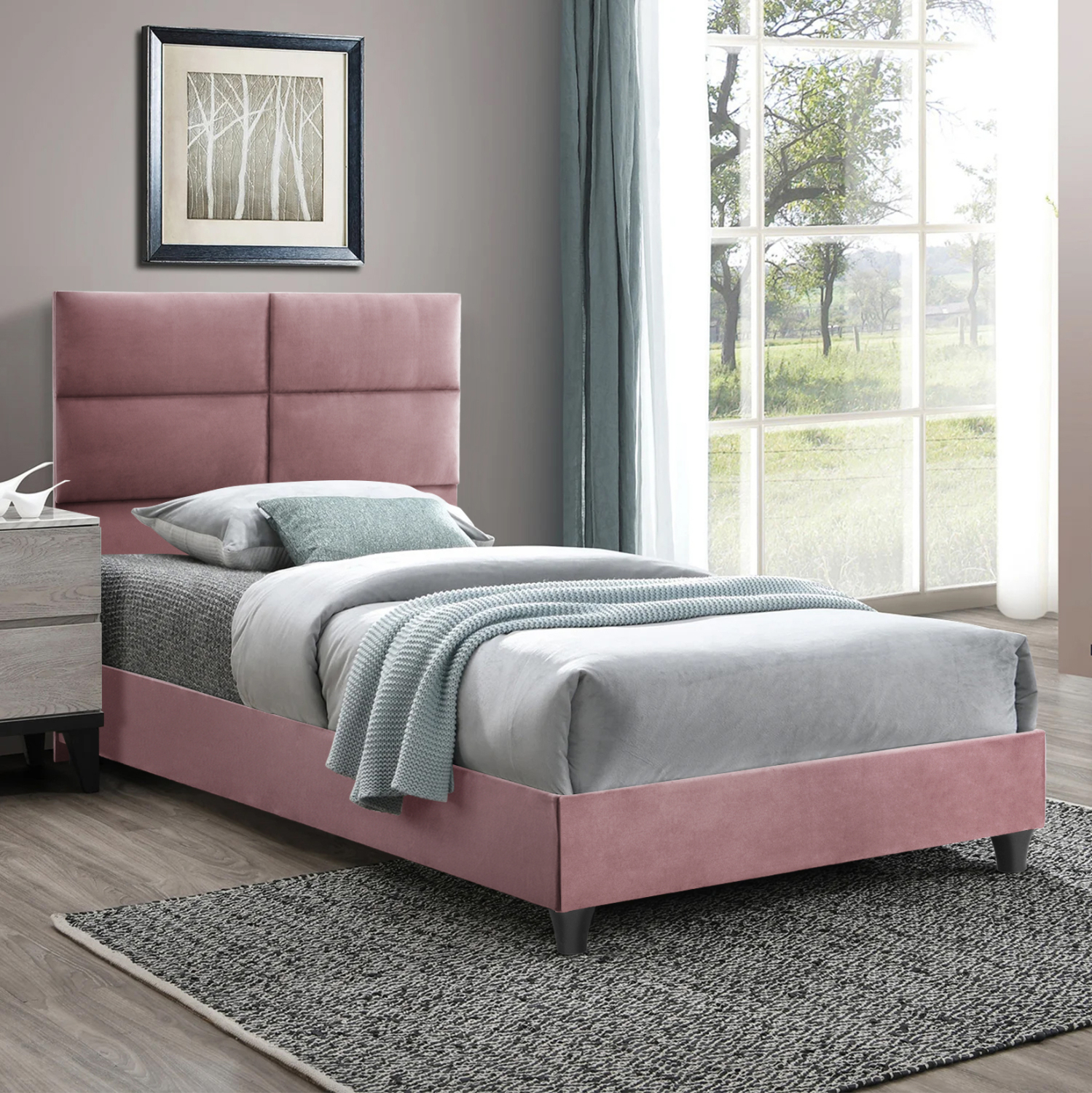 Η επένδυση έχει γίνει εξολοκλήρου από βελούδινο ύφασμα, χαρίζοντας ελκυστική όψη και μια εκλεπτυσμένη γοητεία στην διακόσμηση του υπνοδωματίου. Πρόκειται για ένα ύφασμα απαλό, χαλαρό, απολαυστικό και φινετσάτο που είναι αδύνατον να του αντισταθεί κάποιος. Το θετικό είναι ότι μπορεί να εναρμονιστεί εύκολα με κάθε είδος διακόσμησης, προσδίδοντας στο χώρο φινέτσα και καλαισθησία.