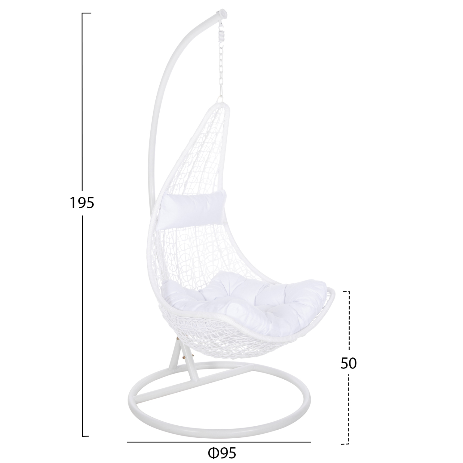Η μονή κρεμαστή φωλιά MILLIE είναι πανέμορφη. Διαχρονικά, οι αιώρες αποτελούν την επιτομή της ξεγνοιασιάς και της χαλάρωσης. Εμείς σας προσφέρουμε την αιώρα αυτή σε στυλ κρεμαστής φωλιάς σαν μεγάλη πολυθρόνα, κατασκευασμένη από συνθετικό Rattan σε χρώμα ΛΕΥΚΟ με ΛΕΥΚΑ, επίσης, μαξιλάρια! Ο σκελετός κρέμασης της αιώρας-φωλιάς είναι από ΛΕΥΚΟ ενισχυμένο μέταλλο και η αιώρα κρέμεται με αλυσίδα από ένα σημείο κρέμασης. Η φωλιά αυτή μπορεί να χρησιμοποιηθεί τόσο για οικιακή όσο και για επαγγελματική χρήση.