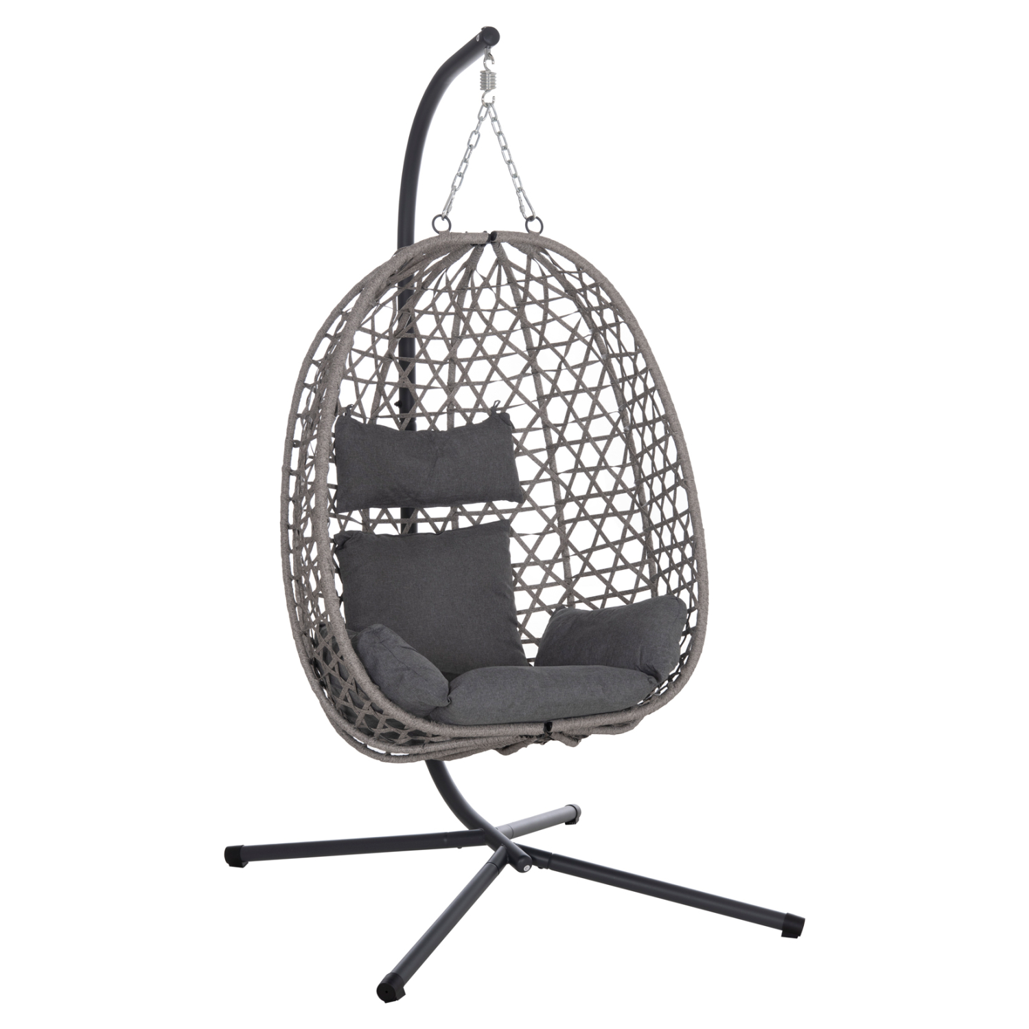 Κρεμαστή Φωλιά Μονή NESTA με Γκρι Μεταλλικό Σκελετό και P.E. Rattan Πλέξη