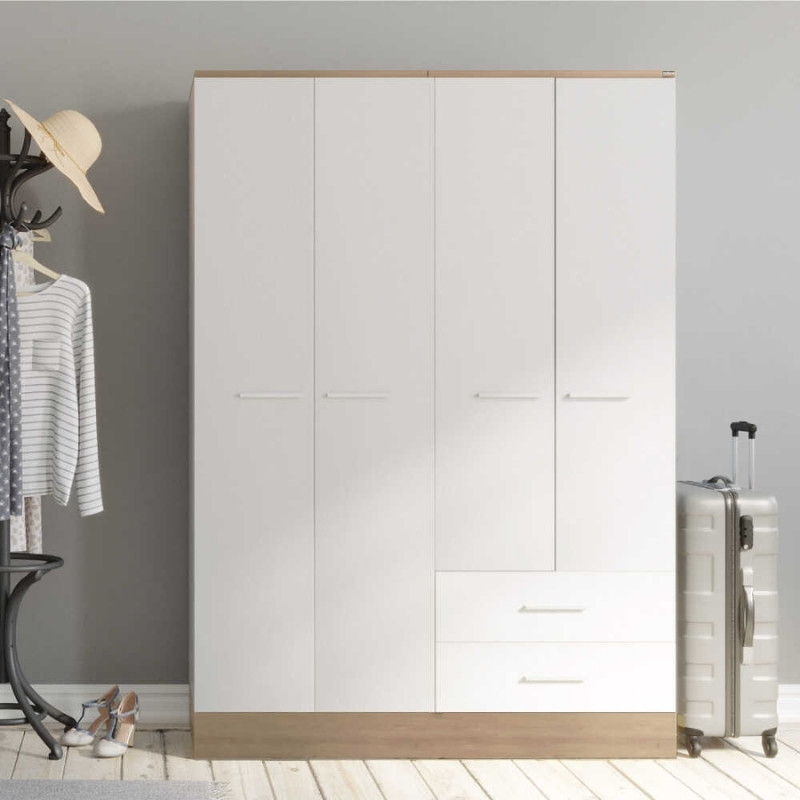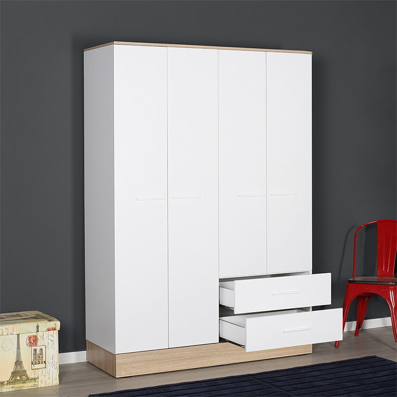 Ντουλάπα ρούχων Base Megapap τετράφυλλη από μελαμίνη σε χρώμα λευκό – sonoma 137x52x198εκ.