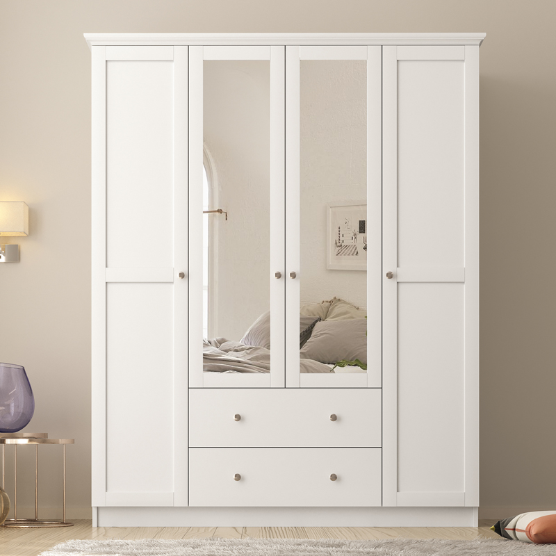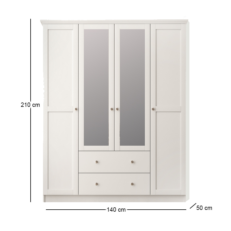 Ντουλάπα ρούχων Emily Megapap τετράφυλλη με καθρέπτη και συρτάρια χρώμα λευκό 140x50x210εκ.