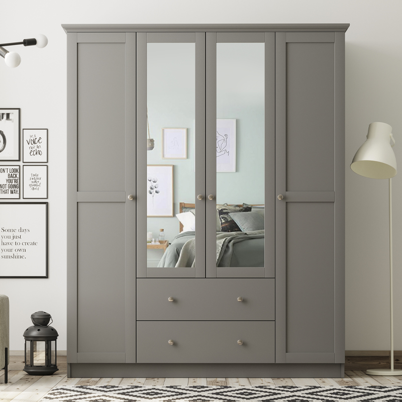 Ντουλάπα ρούχων Emily Megapap τετράφυλλη με καθρέπτη και συρτάρια χρώμα ανθρακί 140x50x210εκ.