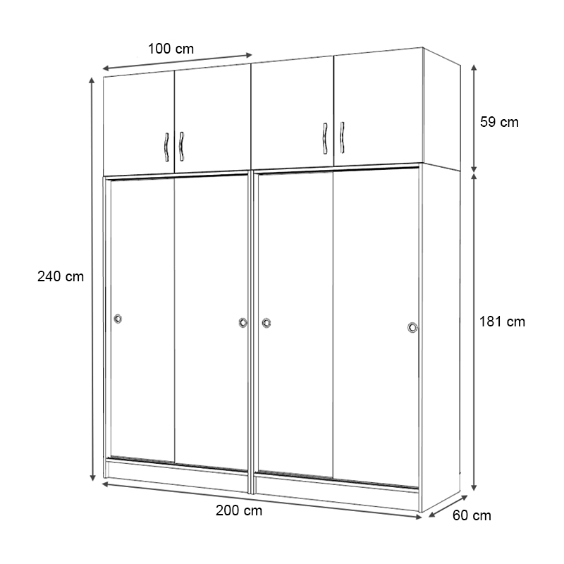 - Διαστάσεις ντουλάπας: Μήκος 200 x Βάθος 60 x Ύψος 181 εκ.