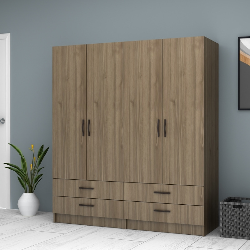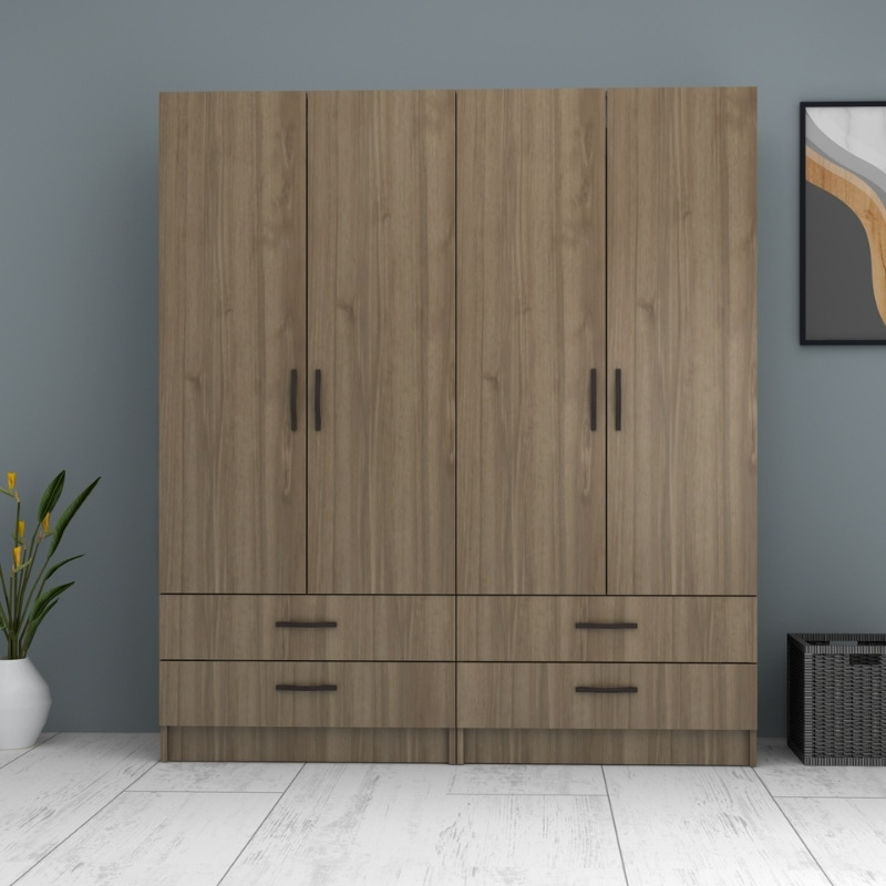 Ντουλάπα ρούχων Ricardo Megapap τετράφυλλη με συρτάρια χρώμα καρυδί 160×61,8×181εκ.
