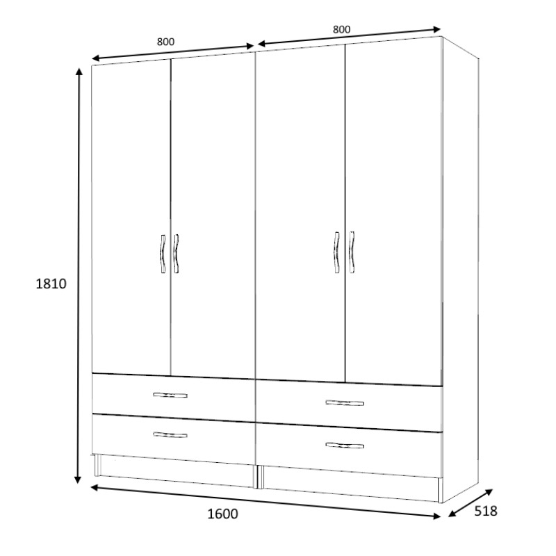 - Διαστάσεις ντουλάπας: Μήκος 160 x Βάθος 51,8 x Ύψος 181 εκ.