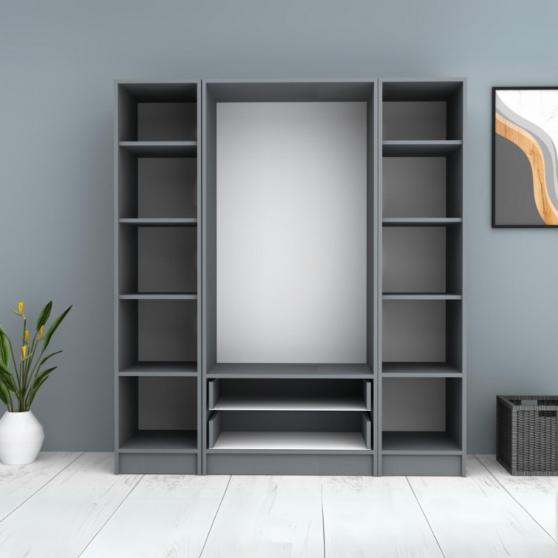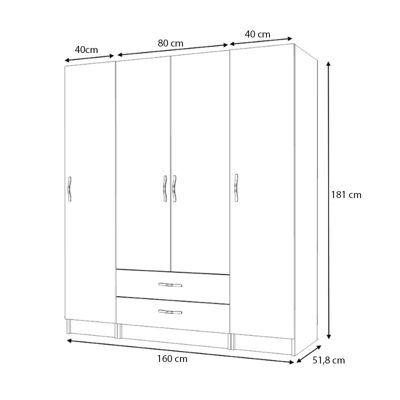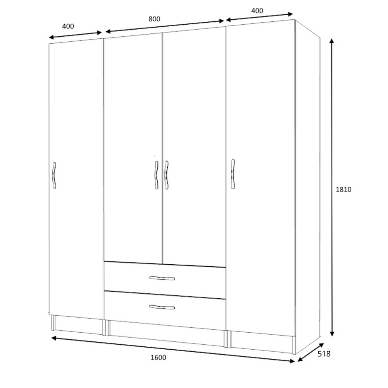 Ντουλάπα ρούχων Ricardo Megapap τετράφυλλη με συρτάρια χρώμα ανθρακί 160×51,8×181εκ.
