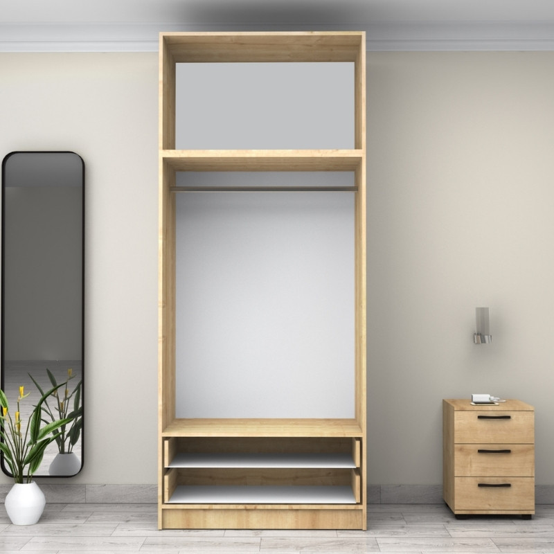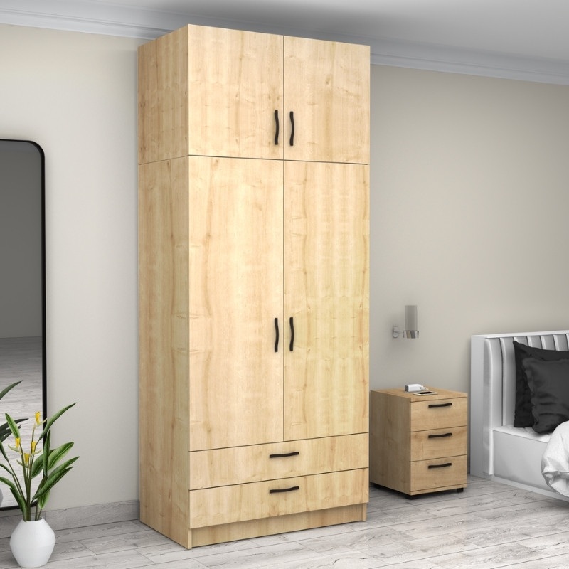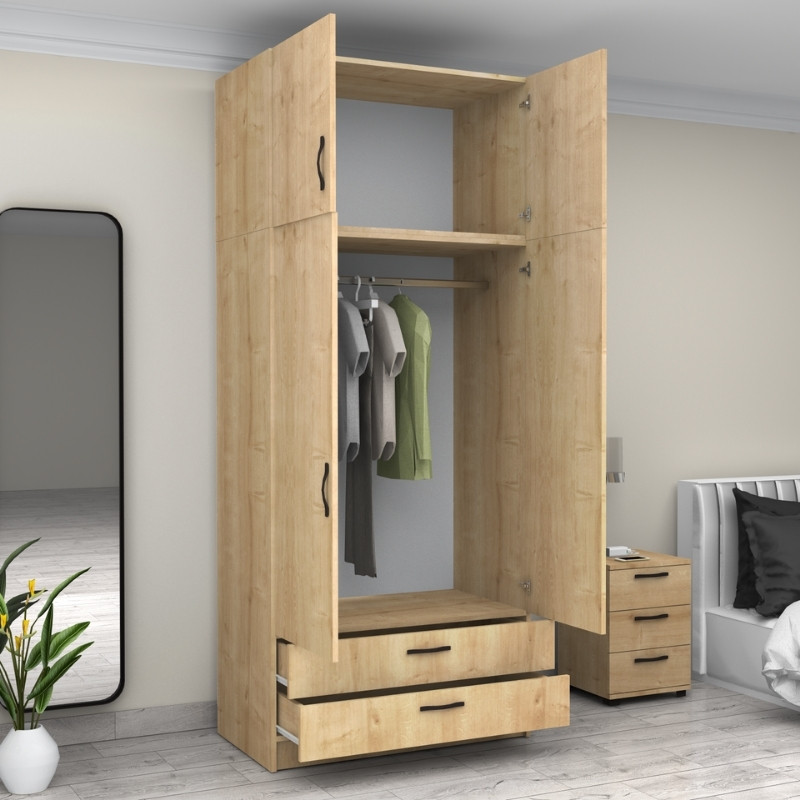 Ντουλάπα ρούχων Victoria Megapap δίφυλλη με πατάρι και συρτάρια χρώμα φυσικό οξιάς 100x60x240εκ.
