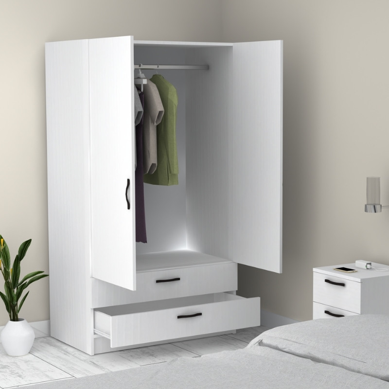 Ντουλάπα ρούχων Victoria Megapap δίφυλλη με συρτάρια χρώμα λευκό 100x60x181εκ.