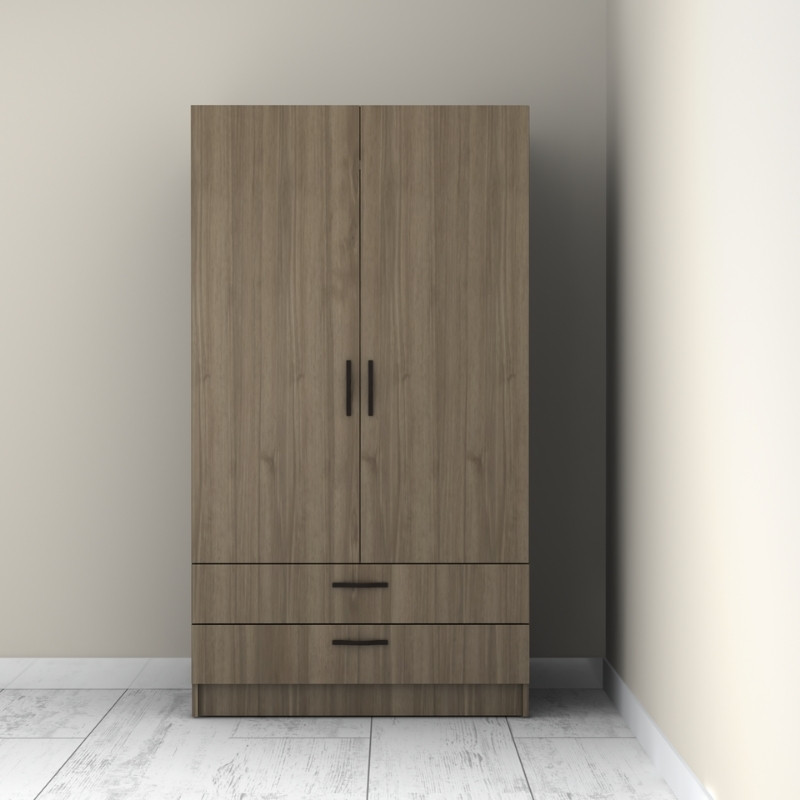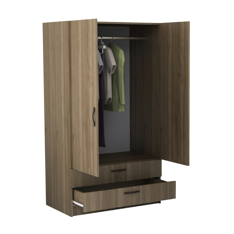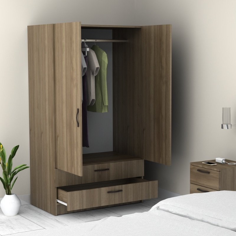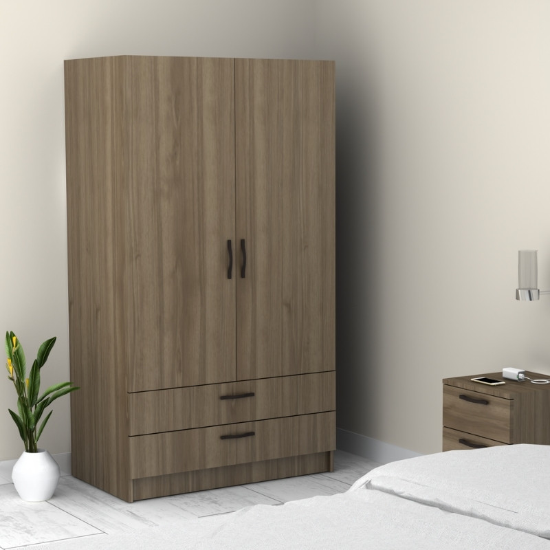 Ντουλάπα ρούχων Victoria Megapap δίφυλλη με συρτάρια χρώμα καρυδί 100x60x181εκ.