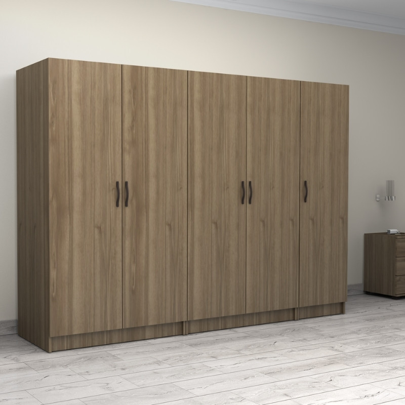 Ντουλάπα ρούχων Victoria Megapap πεντάφυλλη χρώμα καρυδί 250x60x181εκ.