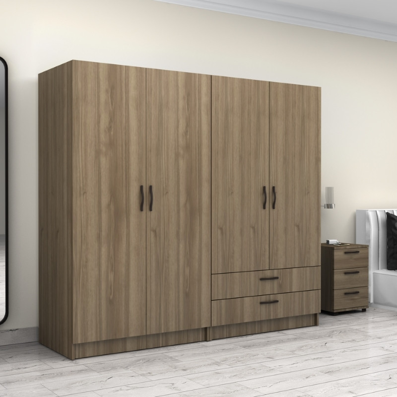 Ντουλάπα ρούχων Victoria Megapap τετράφυλλη με συρτάρια χρώμα καρυδί 200x60x181εκ.