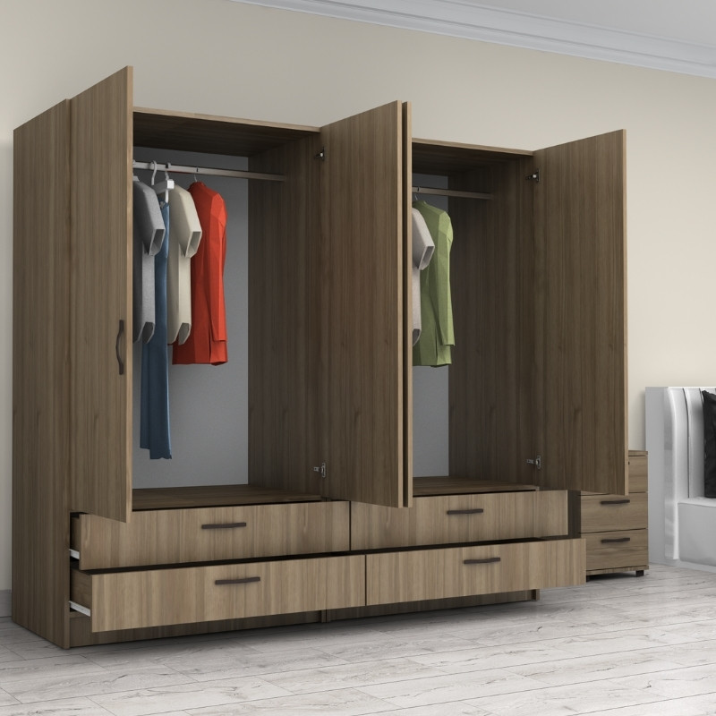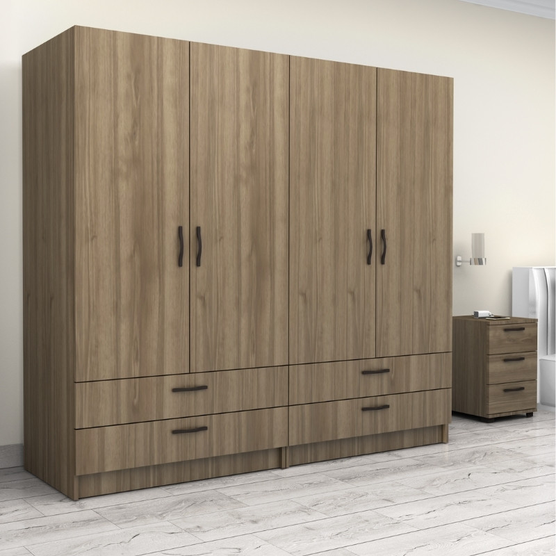 Ντουλάπα ρούχων Victoria Megapap τετράφυλλη με συρτάρια χρώμα καρυδί 200x60x181εκ.
