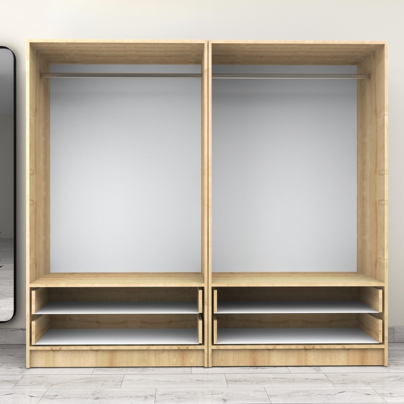 Ντουλάπα ρούχων Victoria Megapap τετράφυλλη με συρτάρια χρώμα φυσικό οξιάς 200x60x181εκ.