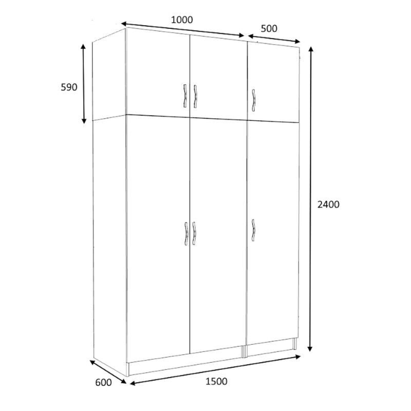 Ντουλάπα ρούχων Victoria Megapap τρίφυλλη με πατάρι χρώμα φυσικό οξιάς 150x60x240εκ.