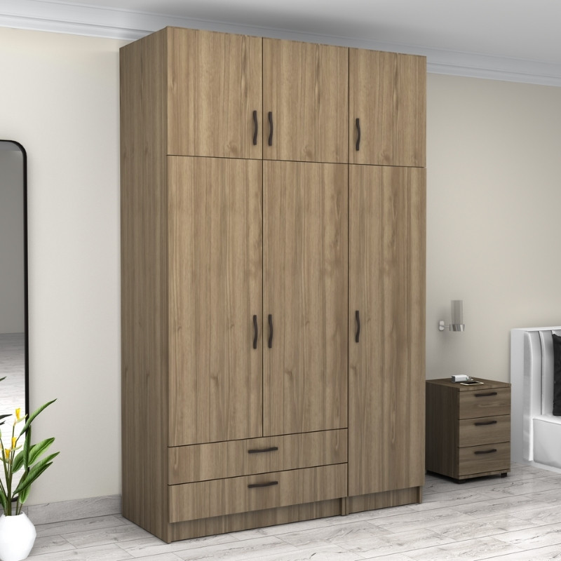 Ντουλάπα ρούχων Victoria Megapap τρίφυλλη με πατάρι και συρτάρια χρώμα καρυδί 150x60x240εκ.