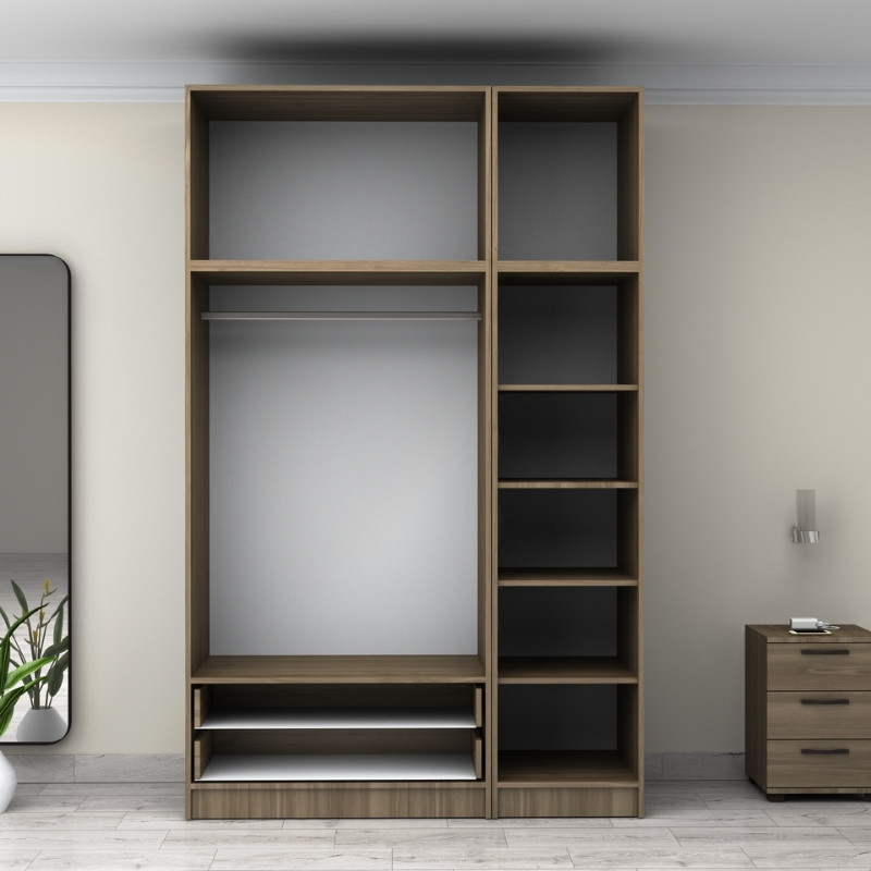 - Στο εσωτερικό της φέρει μια μεταλλική βέργα για κρεμάστρες και ράφια για μεγαλύτερη αποθήκευση. Στο κάτω μέρος φέρει δύο πρακτικά συρόμενα συρτάρια.