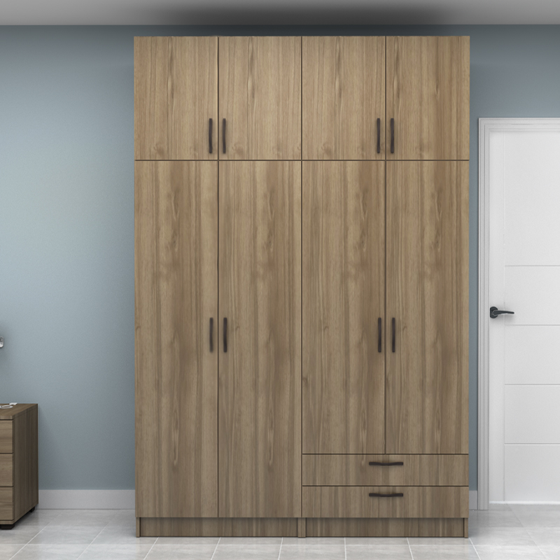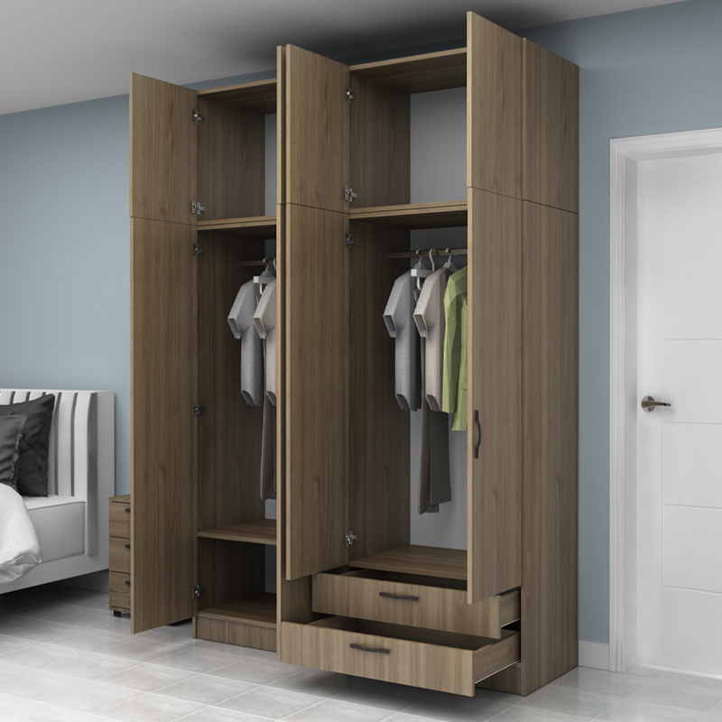Ντουλάπα ρούχων Vivian Megapap τετράφυλλη με πατάρι και συρτάρια χρώμα καρυδί 160×51,8×240εκ.